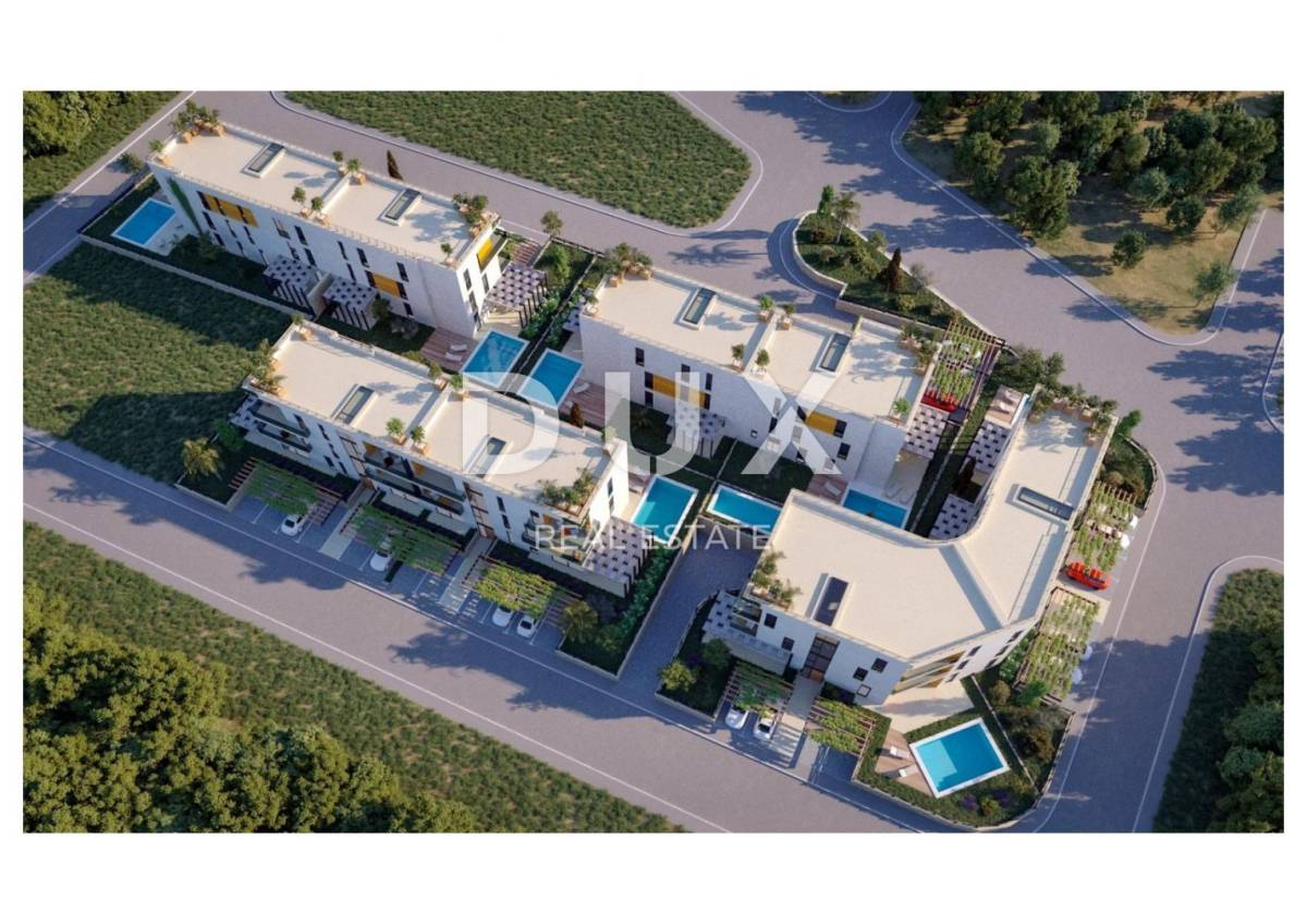 Novi projekt sa pet modernih zgrada nedaleko od centra Poreča (600 m), predviđa svoj završetak do ljeta 2021. godine. Svaka zgrada sastoji se od prizemlja, 1. kata, 2. kata i krovne terase.