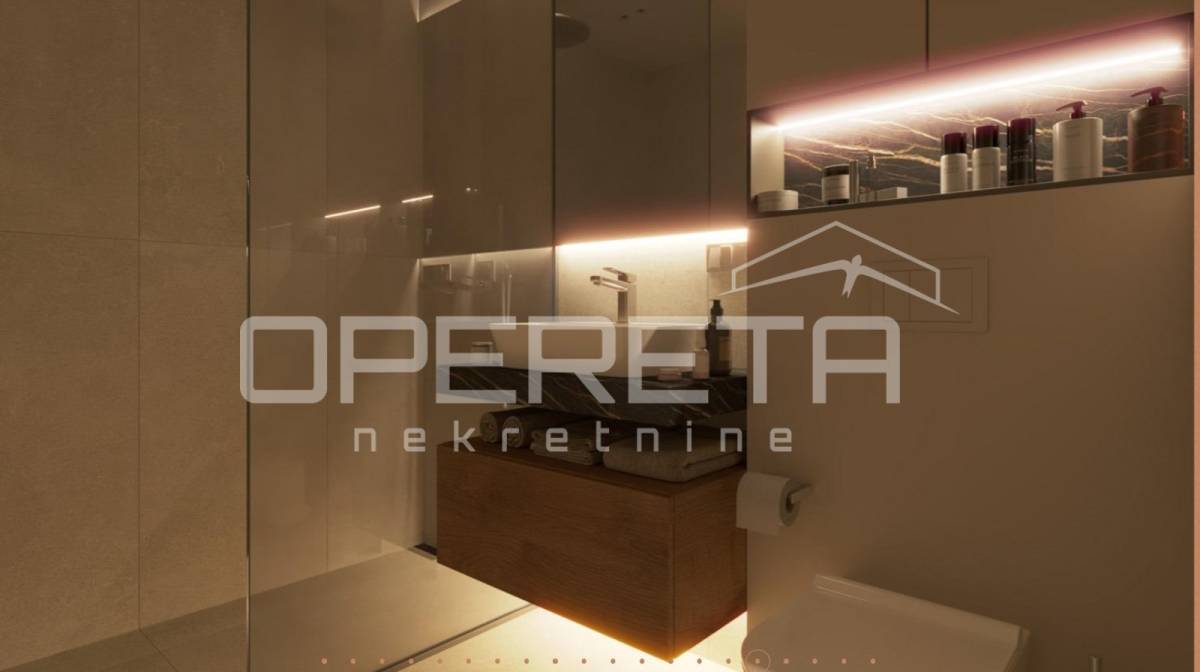 Fasada zgrade debljine 10 cm dodatno je opremljena toplinskom i zvučnom izolacijom. Podovi u stanu bit će obloženi visokokvalitetnim parketom, dok su za prostore poput predsoblja, kupaonica i kuhinje predviđene keramičke pločice. Stan će biti opremljen video parlafonom te priključcima za telefon, televiziju, internet i antenu.