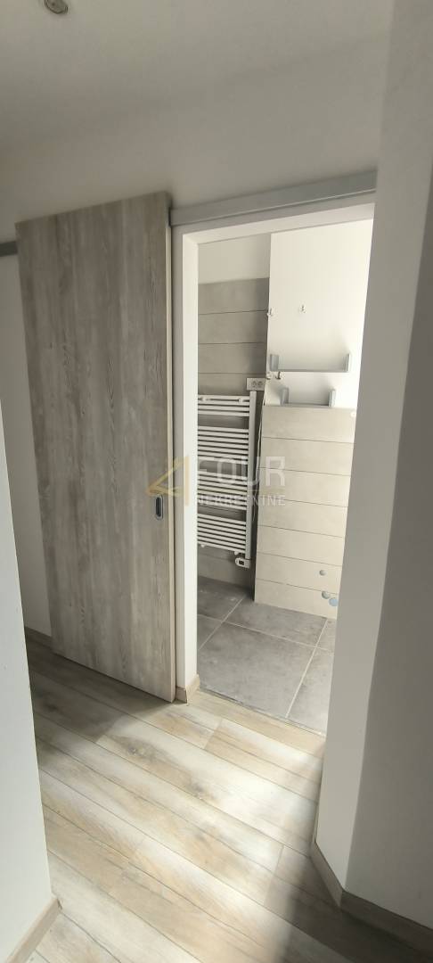 Funkcionalan raspored obuhvaća dvije spavaće sobe, veću i manju, dnevni boravak povezan s kuhinjom i blagovaonicom, hodnik, moderno uređenu kupaonicu s walk-in tušem te balkon. Kuhinja i blagovaonica po želji se mogu odvojiti kliznim vratima, čime se prostor lako prilagođava različitim stilovima života – od otvorenog koncepta do intimnije cjeline.
