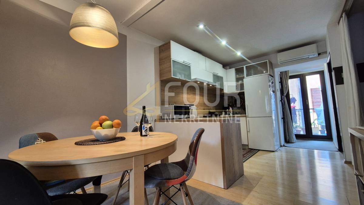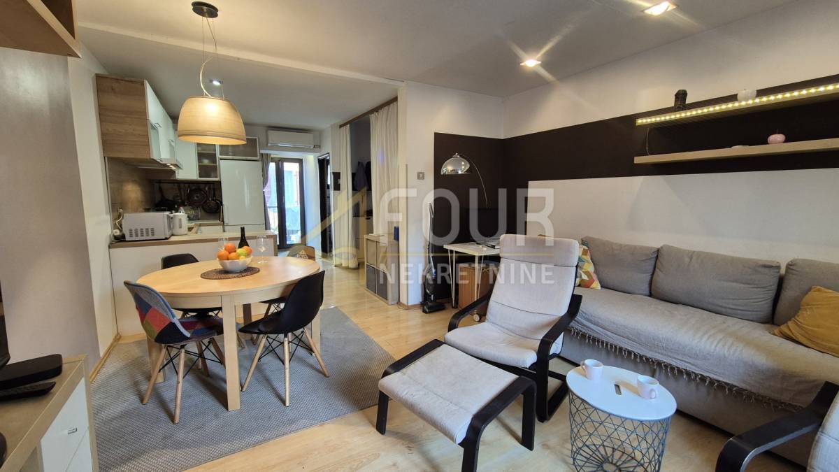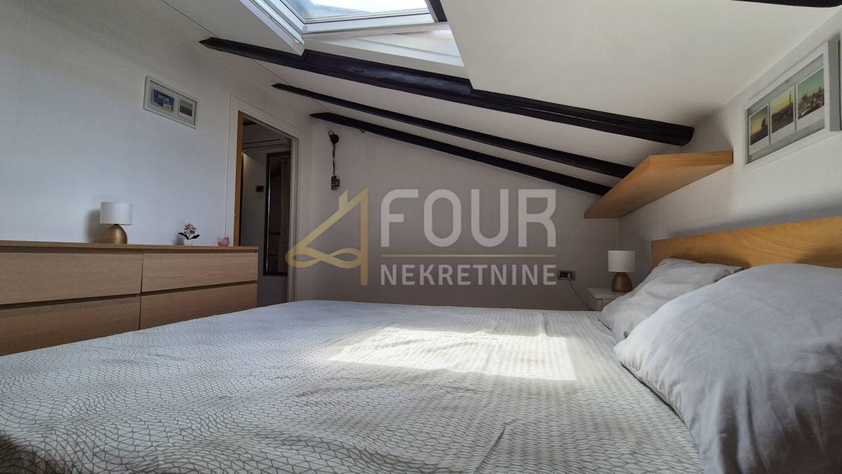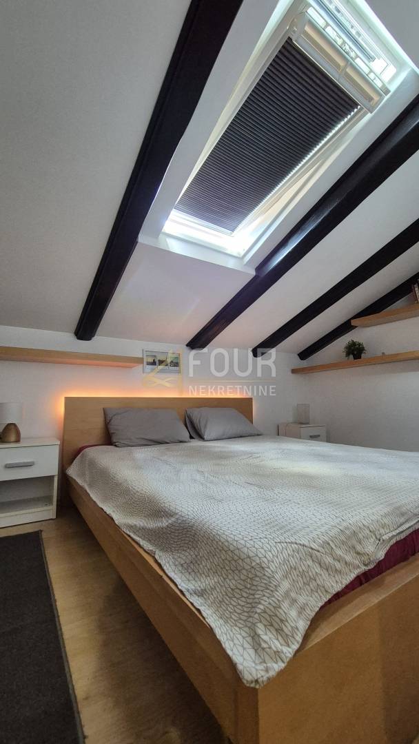 U naravi je to dvoetažni stan površine 60m2, donja etaža stana sastoji se od opremljene kuhinje s dnevnim boravkom i izlazom na balkon te kupaonice, dok se na gornjoj etaži nalaze dvije spavaće sobe s krovnim prozorima.