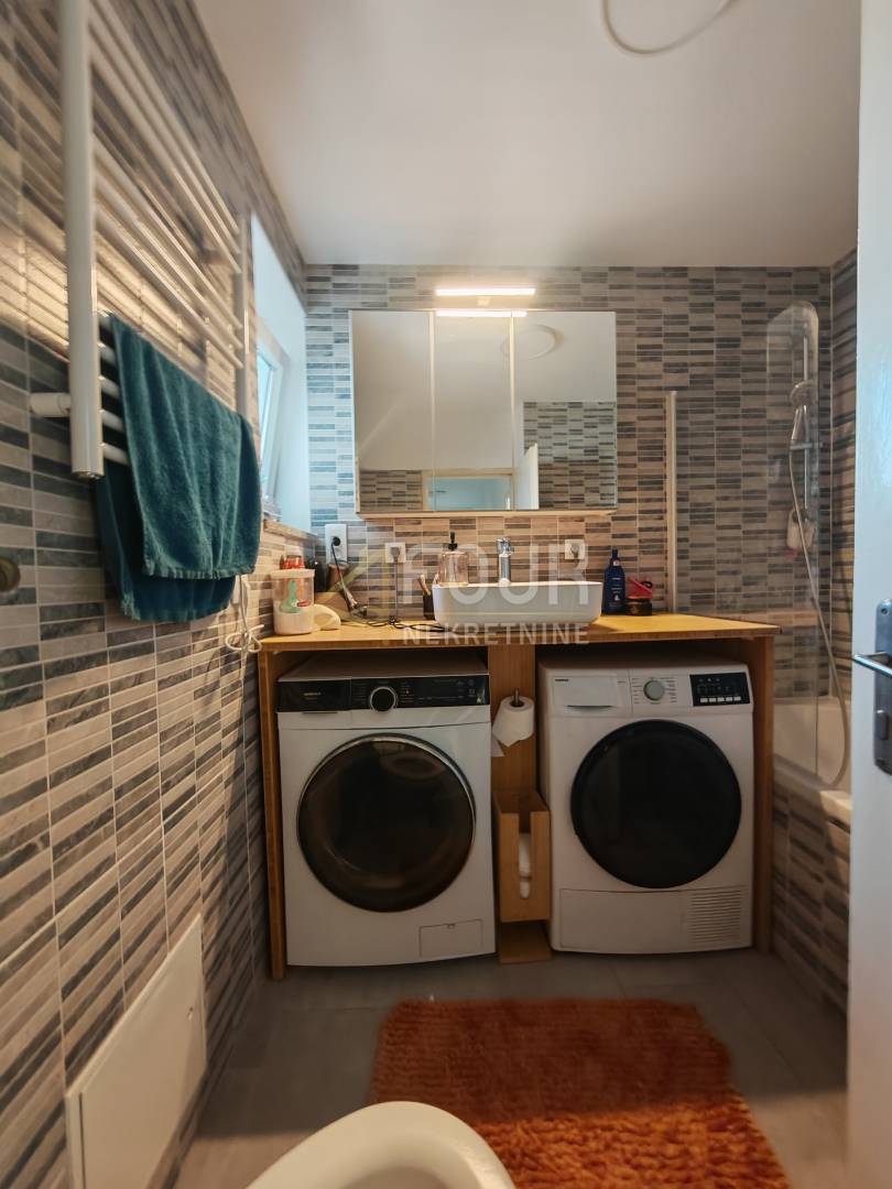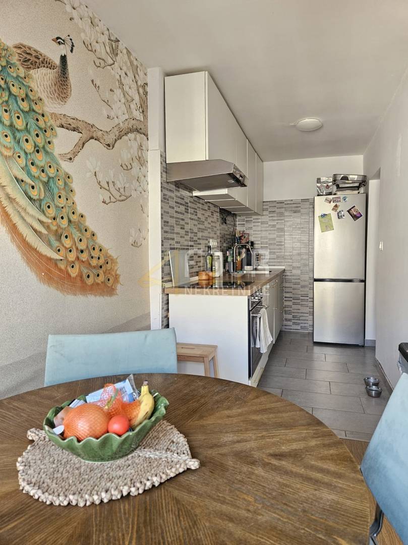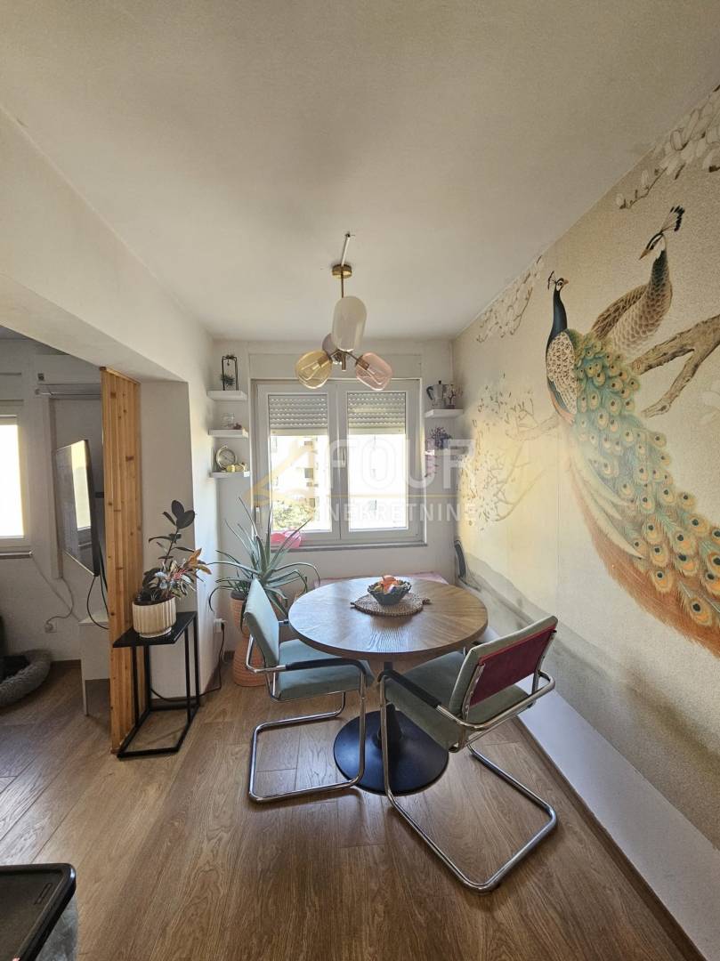 Funkcionalan stan koji se sastoji od kuhinje s blagovaonicom, dnevnog boravka, dvije spavaće sobe, hodnika, kupaonice i lođe.