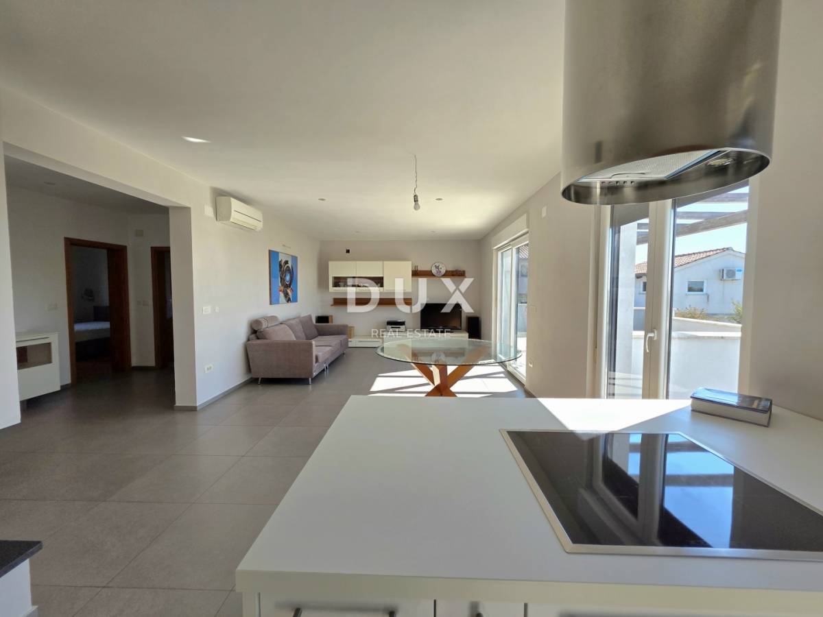 Središnji dio stana čini otvoreni dnevni prostor koncipiran po načelu open-space – moderna kuhinja s otokom skladno se spaja s blagovaonicom i prostranim dnevnim boravkom, stvarajući toplu i povezanu atmosferu doma. Velike staklene stijene otvaraju prostor prema natkrivenoj terasi s otvorenim pogledom na grad i zelenilo, idealnoj za objedovanje, druženje i uživanje u mirnim večerima.