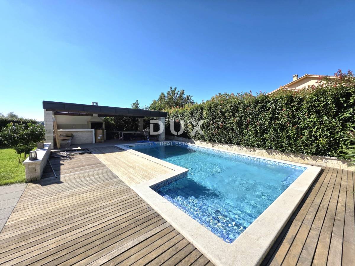 Stražnji dio okućnice prava je oaza za opuštanje i druženje: tu se nalazi bazen s mogućnošću grijanja vode, sunčalište, prostrana natkrivena ljetna kuhinja s roštiljem, te travnata površina savršena za dječju igru, obiteljska okupljanja i boravak kućnih ljubimaca.