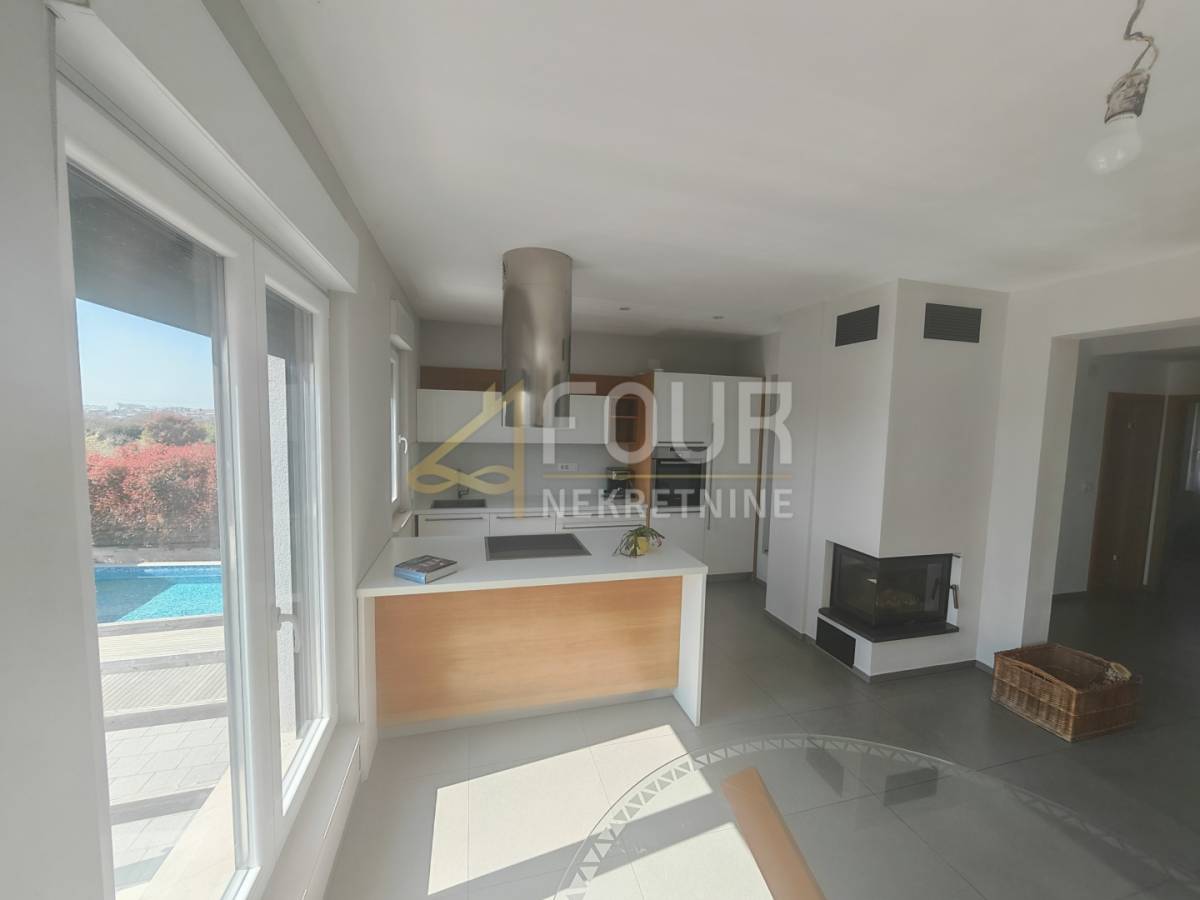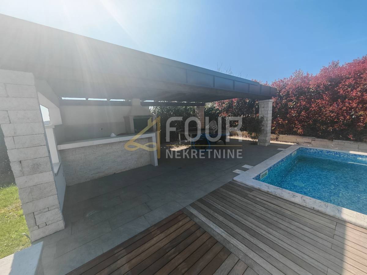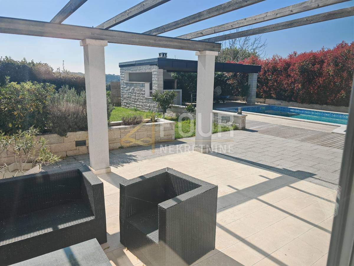 Okućnica je pažljivo uređena s mediteranskim raslinjem i pruža potpunu privatnost, a dodatnu vrijednost daje veliki bazen uz ljetnu kuhinju, pergolu i roštilj, stvarajući idealan prostor za opuštanje i druženje. Nekretnina također raspolaže kotlovnicom, drvarnicom te s četiri natkrivena parkirna mjesta.