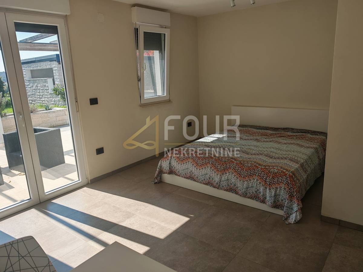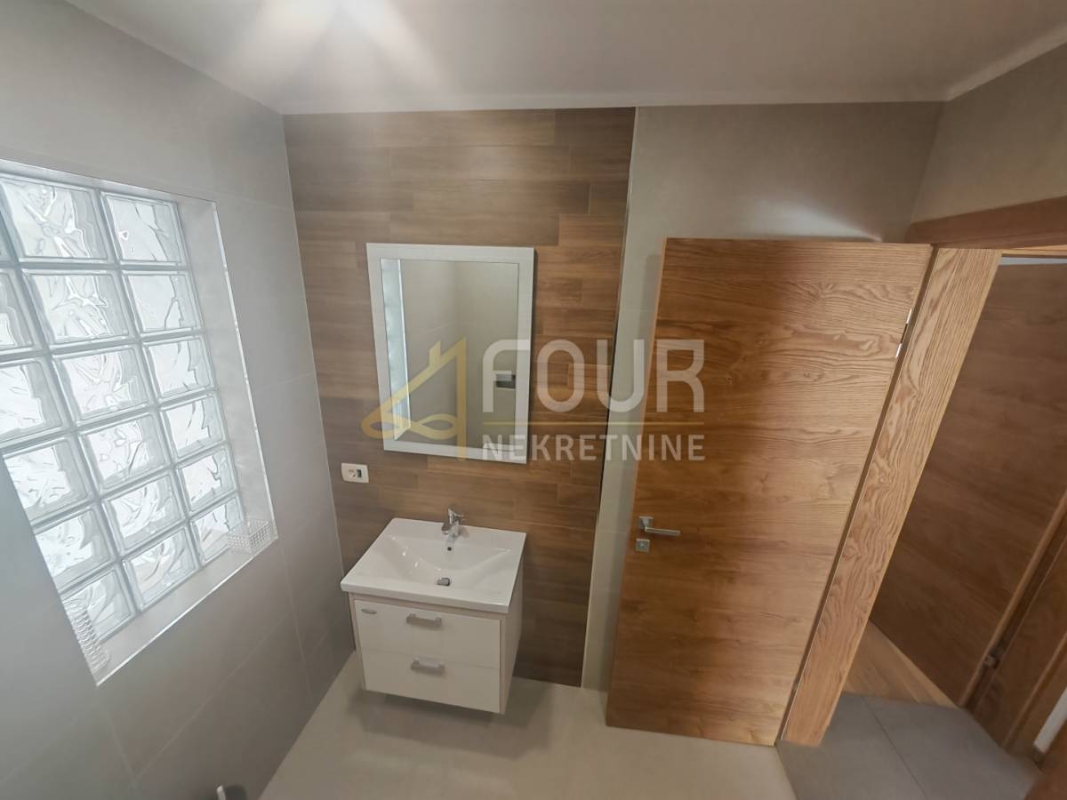 Prizemlje obuhvaća prostrani apartman i poslovni prostor, što ovu nekretninu čini izuzetno pogodnom za kombinaciju stanovanja i poslovanja ili turističkog najma. Na katu se nalazi veliki i svijetao stan s izlazom na terasu od 25 m2, koji nudi ugodan i funkcionalan raspored s više soba, uključujući tri spavaće sobe i tri kupaonice, te modernu kuhinju povezanu s prostranim dnevnim boravkom i blagovaonicom. U stanu je pripremljeno podno grijanje, za koje je potrebno ugraditi toplinsku pumpu, dok su u cijeloj kući već postavljeni klima uređaji i PVC stolarija.