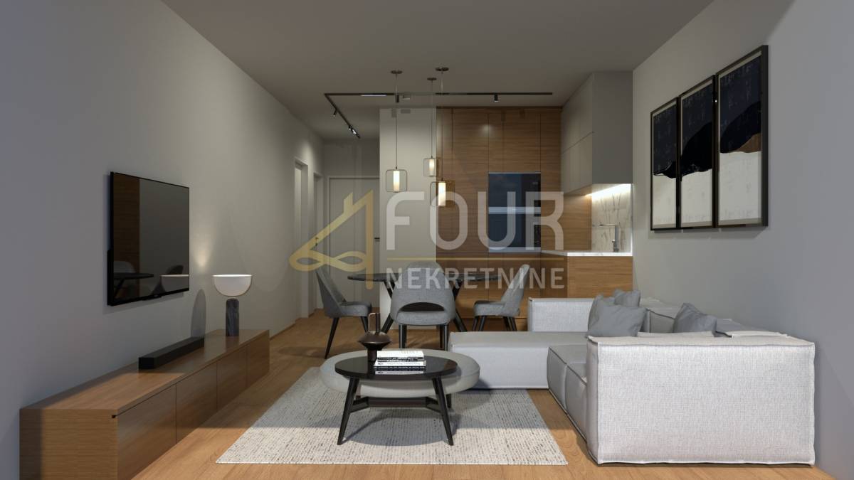 Ovaj funkcionalan stan površine 54.57m2 nudi optimalan raspored: prostran dnevni boravak s kuhinjom i blagovaonicom, dvije udobne spavaće sobe, kupaonicu i hodnik, a lođa od 3.56 m2 pruža dodatni kutak za opuštanje.