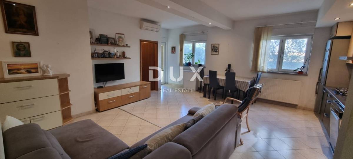 Predmetna se nekretnina nalazi u većoj stambenoj zgradi smještenoj u neposrednoj blizini pulske zaobilaznice. Stan se nalazi u prizemlju zgrade te je ukupne površine 81,58m2. Sastoji se od ulaznog hodnika, prostranog dnevnog boravka spojenog s kuhinjom i blagovaonicom, dvije spavaće sobe, kupaonice i terase putem koje se izlazi na privatno, ograđeno dvorište od 50m2.