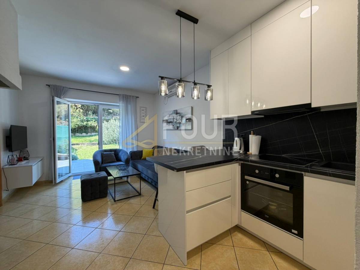 Na prodaju je potpuno adaptiran i namješten stan u prizemlju zgrade u Raši, površine 48,65 m2, s terasom od približno 25 m2. Ima zaseban ulaz, pruža privatnost i udoban život u mirnom okruženju.
