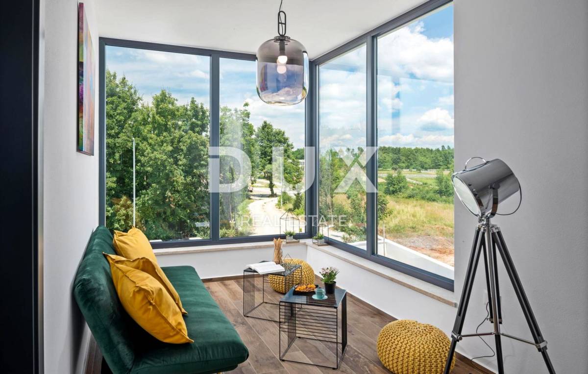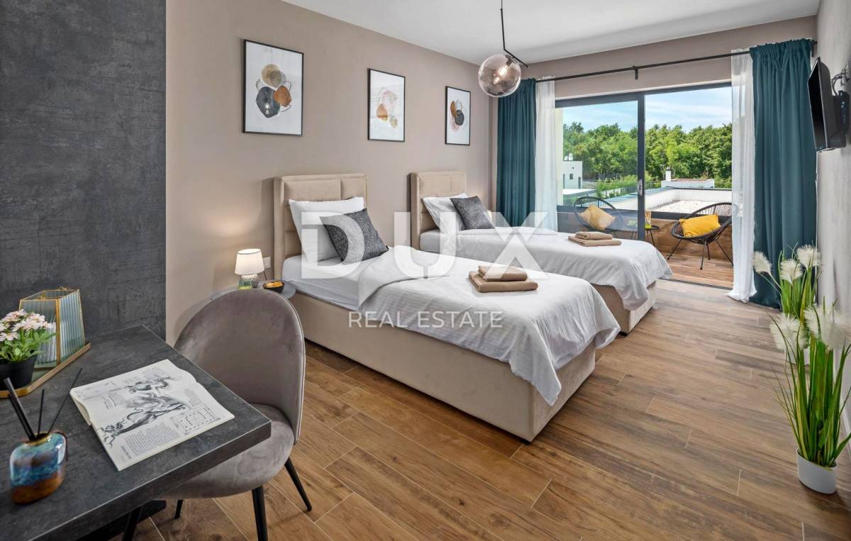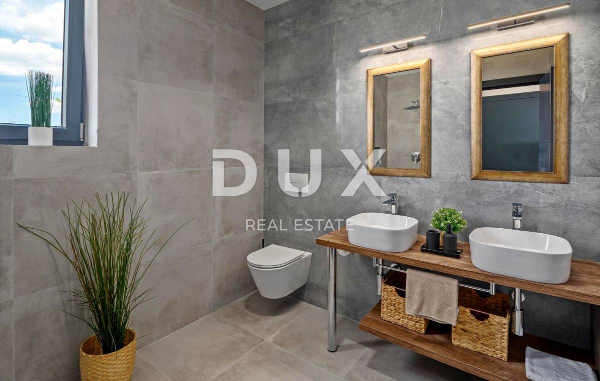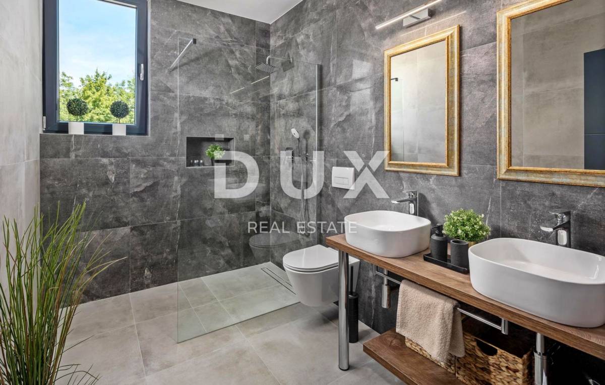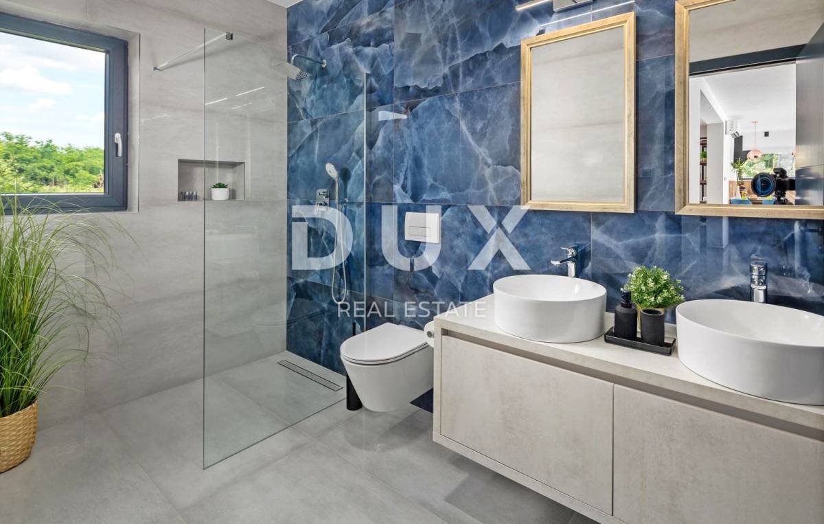 U pitomom susjedstvu u okolici grada Rovinja, okružena prirodom, obiteljskim kućama i kućama za odmor na prodaju je vila moderne arhitekture.