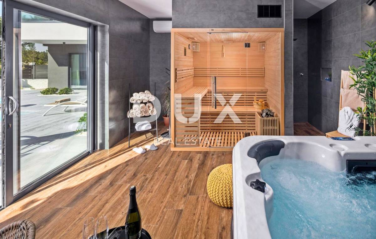 Prizemlje se sastoji od wellness prostora sa saunom i hidromasažnom kadom, prostora otvorenog koncepta koji ujedinjuje dnevni boravak, blagovaonicu i kuhinju, dvije spavaće sobe s vlastitim kupaonicama, gostinjskog toaleta i spremišta.