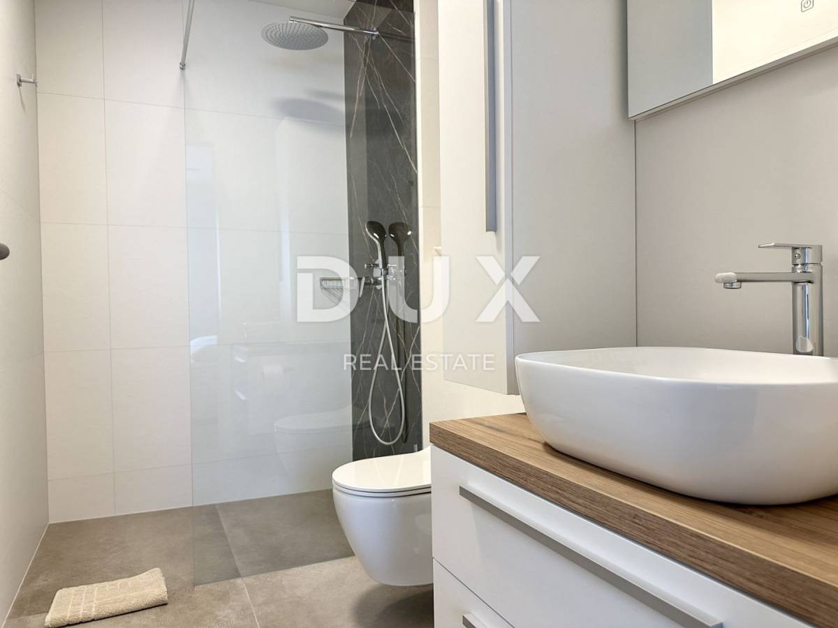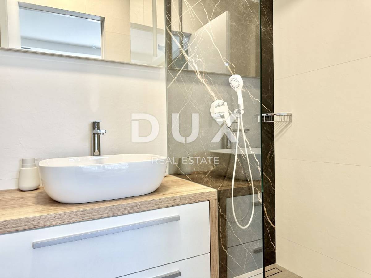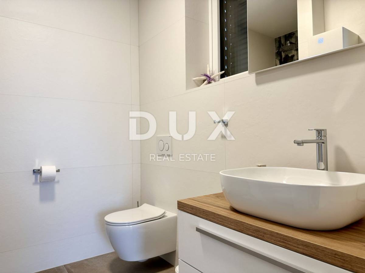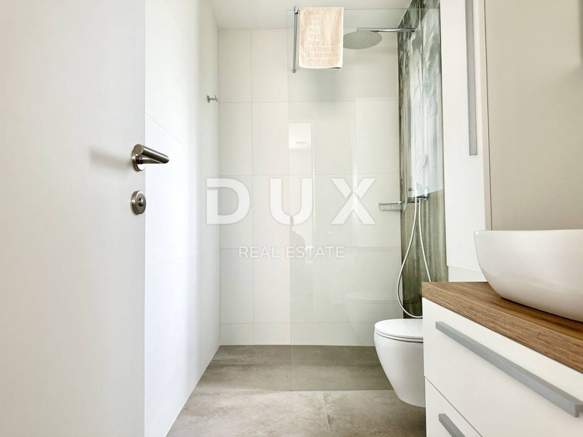 Ova impozantna nekretnina prostire se na tri razine: podrum, prizemlje, kat s balkonom, ukupno 194 četvornih metara stambenog prostora. Prizemlje nudi prostrani dnevni boravak s izlazom na natkrivenu terasu, moderno opremljenu kuhinju, prostranu spavaću sobu, elegantnu kupaonicu, zasebni WC te prostrani hodnik. Unutarnjim stubištem dolazimo na prvi kat, gdje se nalaze tri udobne spavaće sobe, svaka sa svojom privatnom kupaonicom, te veličanstven balkon s panoramskim pogledom na more. Iznenađenje na vrhu je prostrana krovna terasa s nevjerojatnim pogledom na more i okolni krajolik, idealna za uživanje u zalascima sunca. Podrum, površine 28 četvornih metara, nudi dodatan prostor za skladištenje ili potencijalno različite hobije.