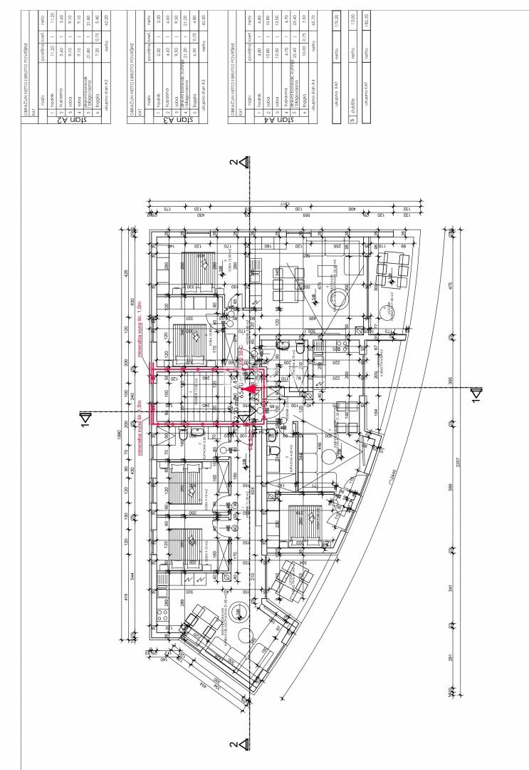 1 Kat - sastoji se od od 3 stambene jedinice i to A2 = 62.20m2, A3 = 42,30m2 i A4 = 65,70m2