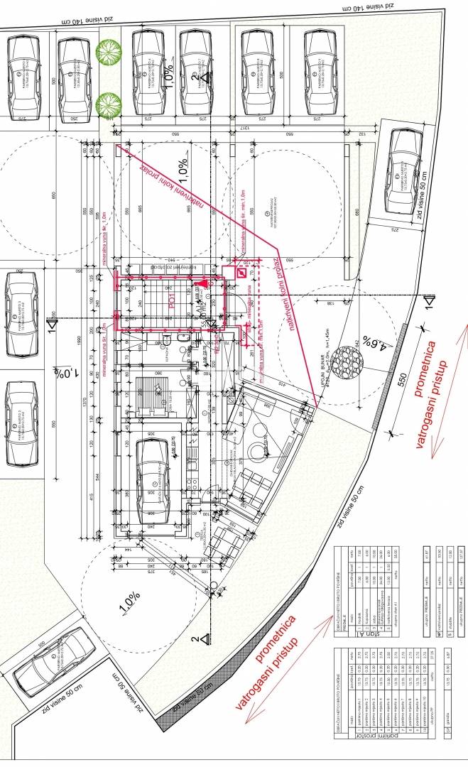 OPIS PROJEKTA: Zgrada se sastoji od sveukupno 7 stambenih jedinca i 10 vanjskih parking mjesta i jednog garažnog parking mjesta
