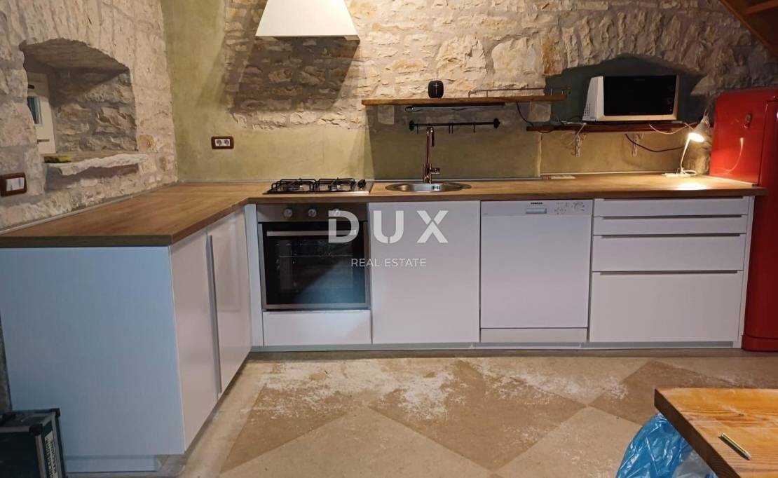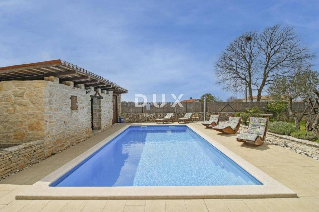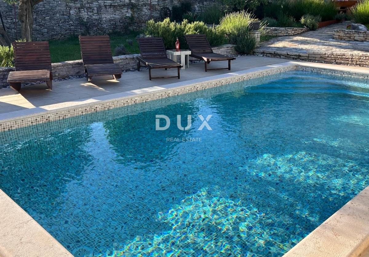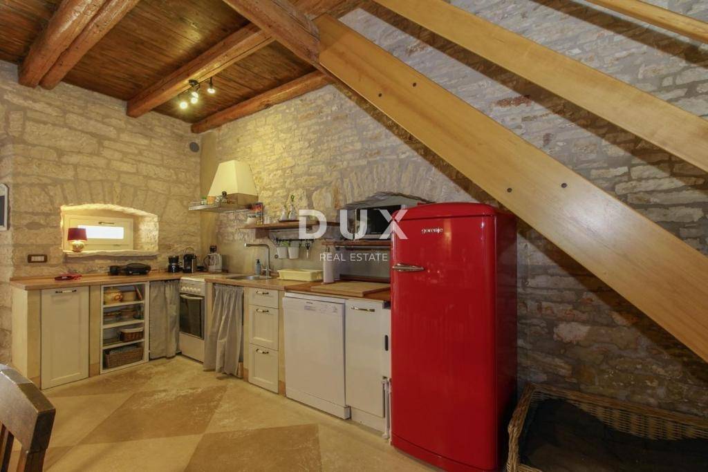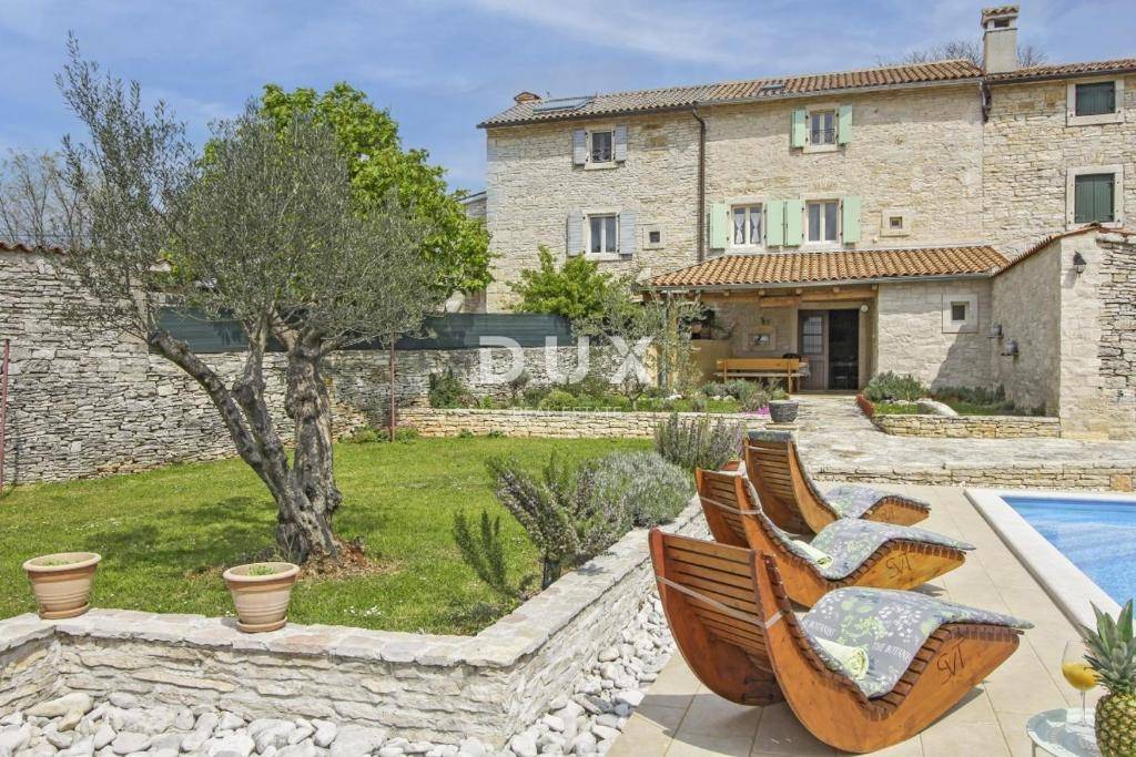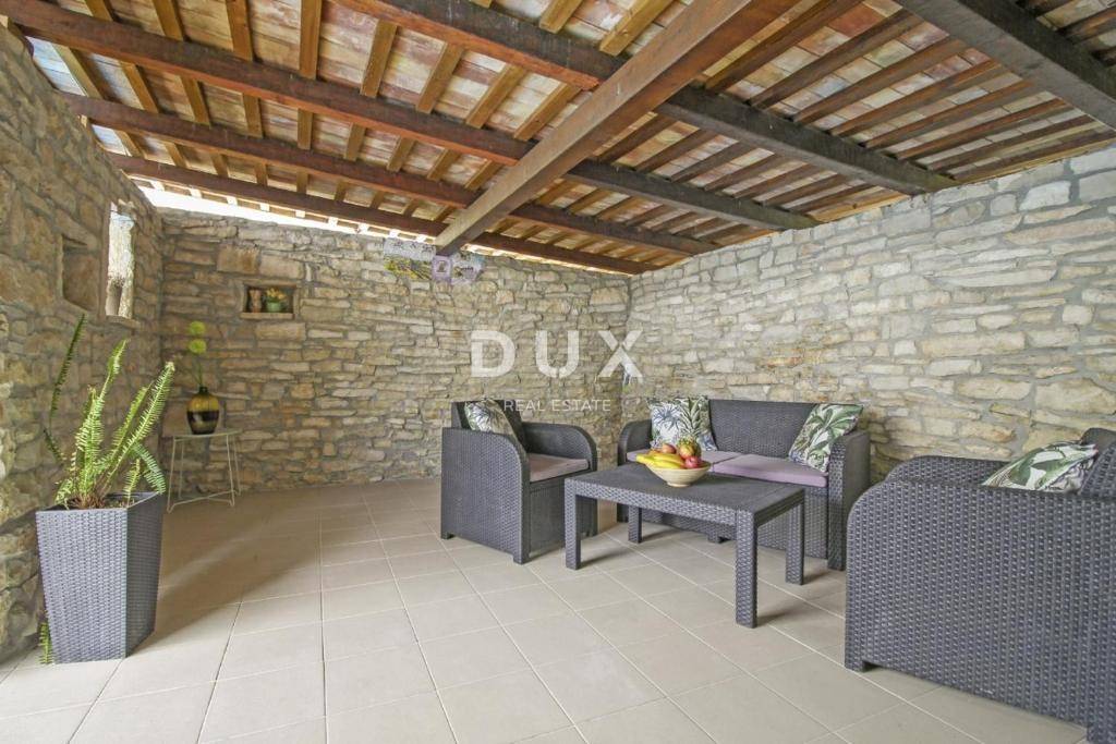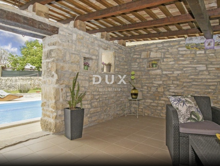 Upravo ovdje na zemljištu površine 660 m2, smjestila se prekrasna autohtona kamena kuća s bazenom. Nalazi se u malom selu, na mirnoj lokaciji. Površina kuće je 136 m2, nalazi se u nizu a proteže se kroz prizemlje i dvije etaže. U prizemlju se smjestila kuhinja sa blagovaonicom i dnevnim boravkom po konceptu open space te jedna kupaonica. Unutarnje stepenice povezuju kat kuće na kojem se nalaze dvije spavaće sobe te jedna kupaonica, dok se na drugoj etaži potpuno otvorenog tipa smjestila prostrana spavaća soba sa jednom kupaonicom.