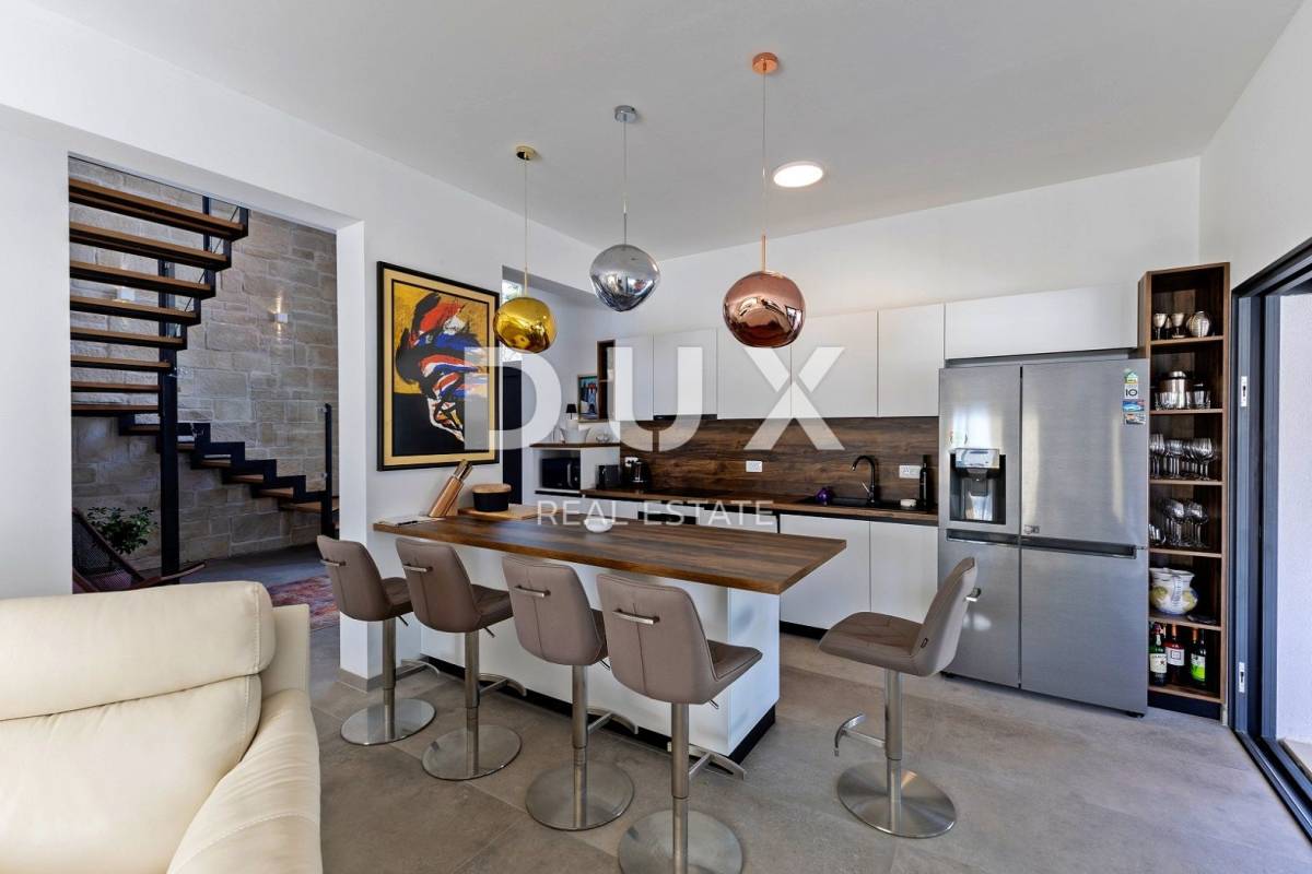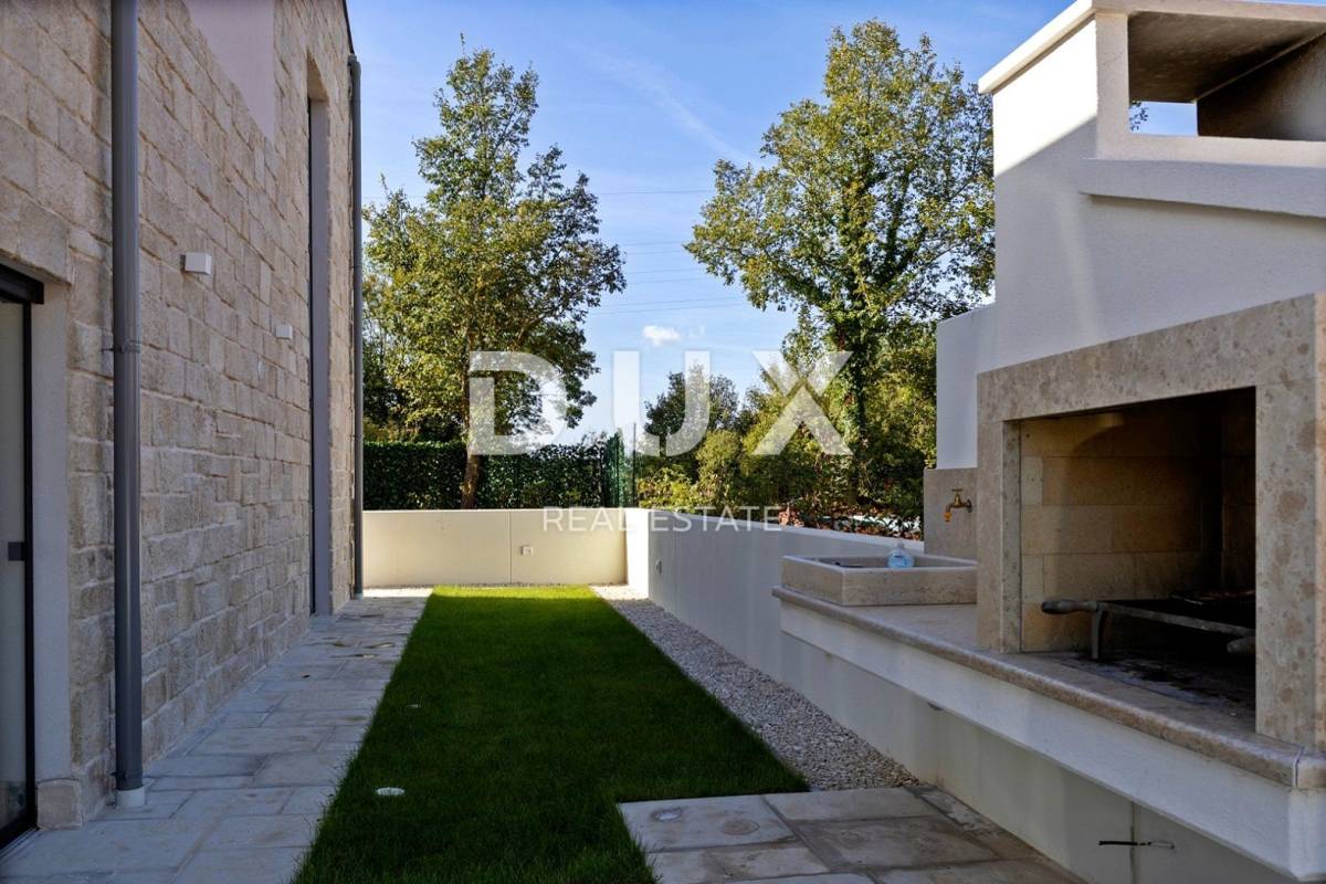 Kuća se svojom arhitekturom oblikovno i koloristički uklopa u naselje i krajolik te stvara sinergiju prirodnog okruženja, modernog dizajna i tradicionalne istarske arhitekture a kvaliteta gradnje jamči dugoročno zadovoljstvo i kvalitetu stanovanja. Raspored interijera raspoređen na dvije etaže nudi skladan životni ambijent koji odiše elegancijom te pruža visoku razinu komfora uz vrhunsku opremu i elemente modernog namještaja.