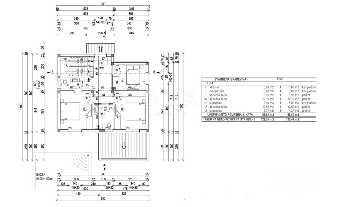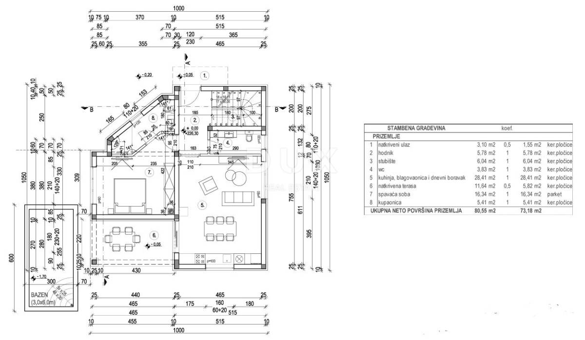 Na svakoj parceli projektirana je moderna kuća s bazenom, funkcionalno raspoređena i prilagođena potrebama suvremenog načina života.