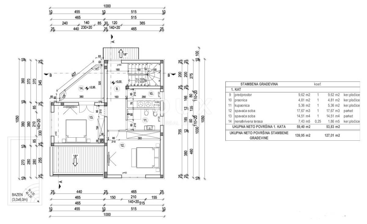 Druga kuća, površine 139,95 m², u prizemlju sadrži natkriveni ulaz, hodnik, wc, kuhinju, blagovaonicu i dnevni boravak s izlazom na natkrivenu terasu, a dodatna prednost joj je spavaća soba s vlastitom kupaonicom u prizemlju. Na katu su smještene dvije spavaće sobe, još jedna kupaonica, praonica i natkrivena terasa.