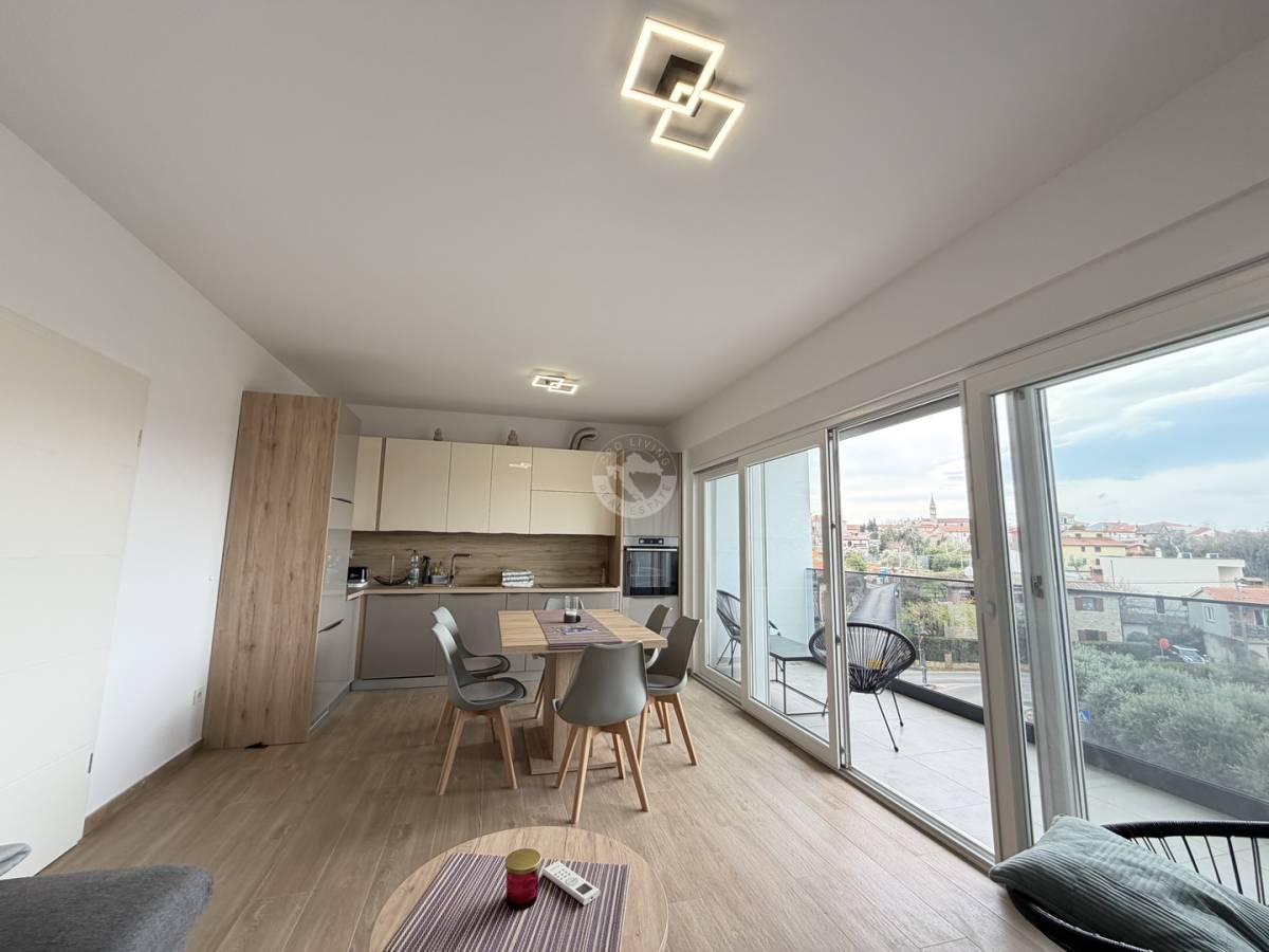 Na prodaju je vrhunski uređen i potpuno namješten trosoban stan smješten na 3. katu moderne zgrade s liftom, u mirnom i atraktivnom mjestu Tar, nedaleko od Poreča.