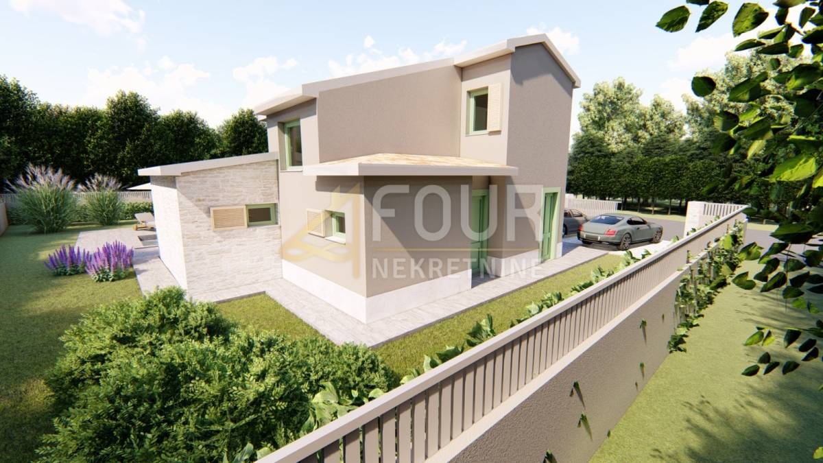 Kuća je u fazi roh-bau gradnje i prostire se na 127 m2 kroz prizemlje i prvi kat, povezane unutarnjim stubištem. Projektirana je s jednim stanom raspoređenim u tri spavaće sobe, dnevni boravak, kuhinju, tri kupaonice i WC, a planirana je terasa i balkon.