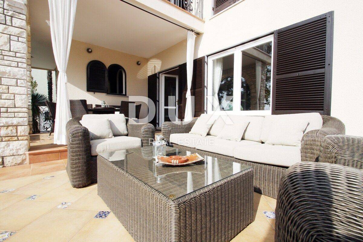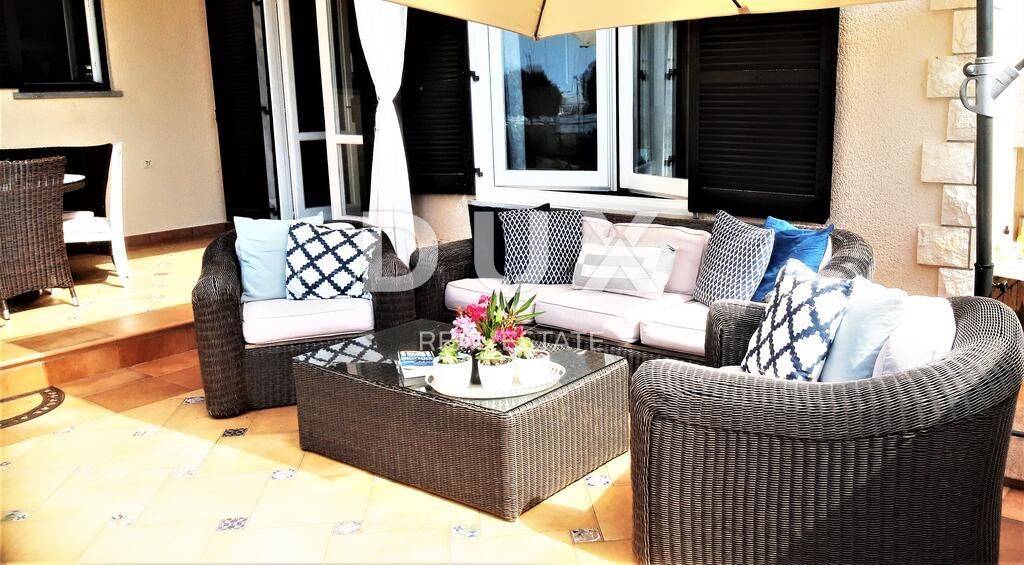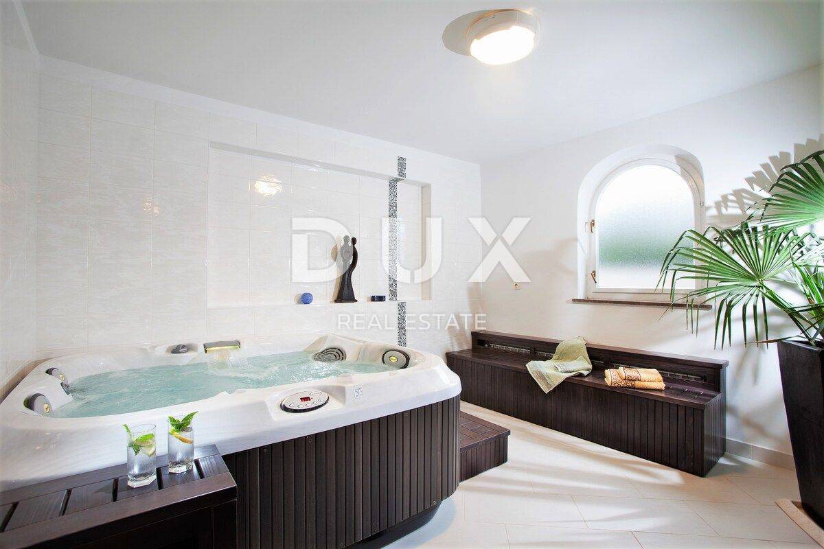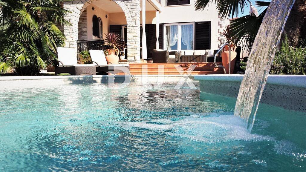 Na ekskluzivnoj lokaciji 30 metara od mora i 150 metara od plaža prodaje se ova prekrasna vila u mediteranskom stilu, prvi red do mora, s vanjskim bazenom, jacuzzijem, teretanom i prekrasnim vrtom bogatim mediteranskim biljkama. Vila je ograđena je s ogradom od ručno rađenog kovanog željeza.