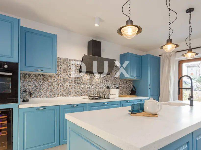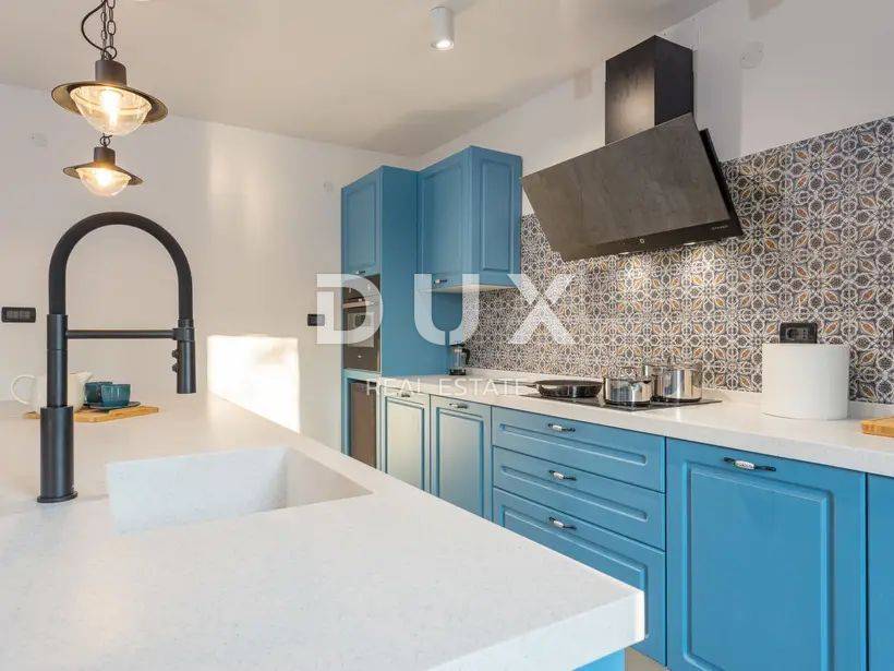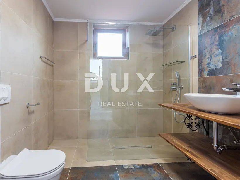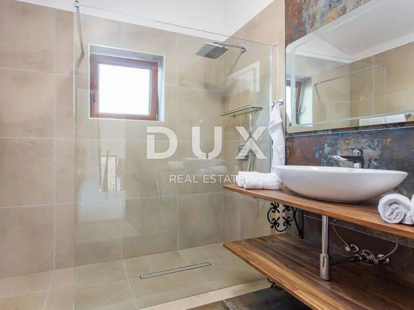 Na okućnici se nalazi velika ljetna kuhinja, predivni preljevni bazen od 42 m2 s hidro masažom i vanjskim tušem.