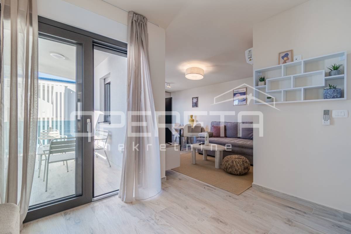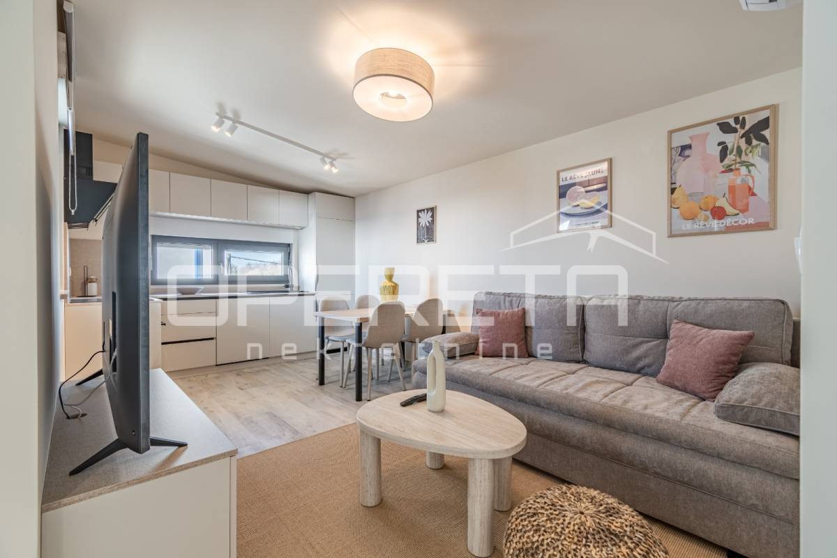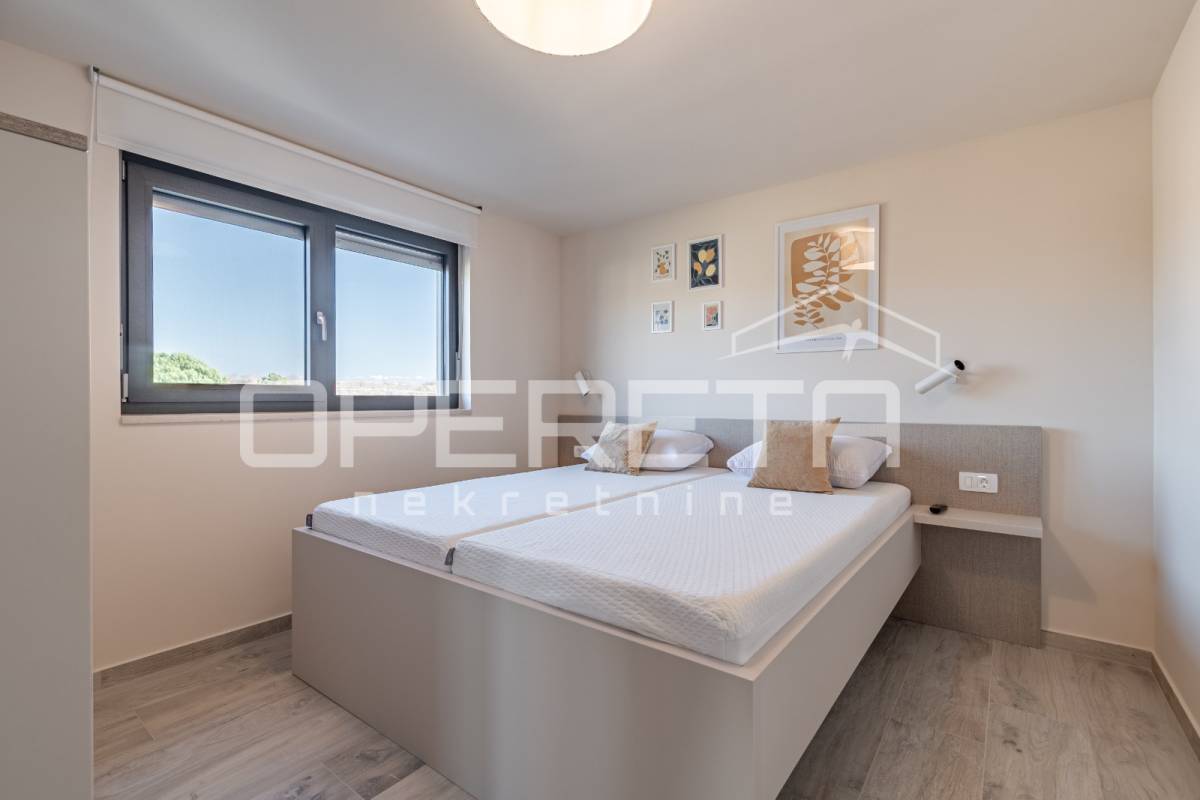 Smješten je na drugom katu manje stambene zgrade i sastoji od kupaonice, 2 spavaće sobe, kuhinje s blagovaonicom i dnevnog boravka s izlazom na terasu.