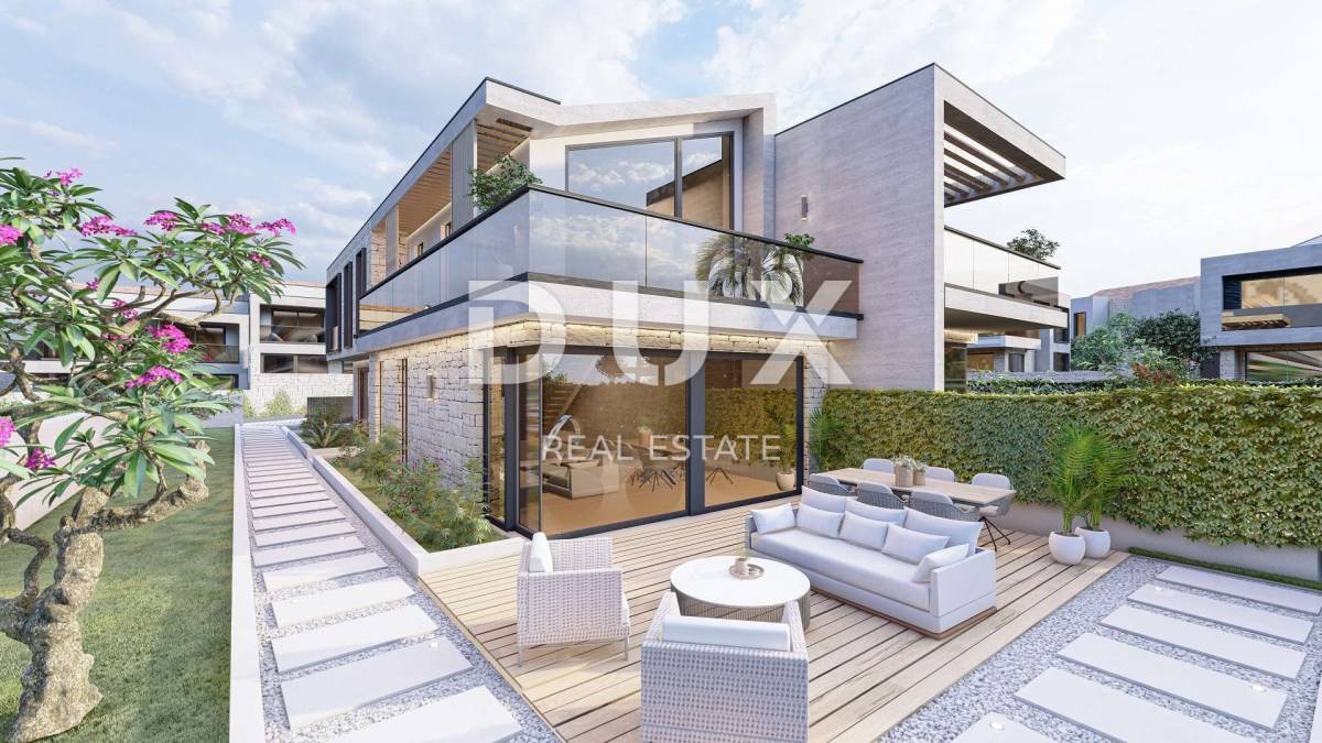 Dobrodošli u oazu raskoši i opuštanja, dobrodošli u ovu predivnu dvojnu vilu, savršeno smještenu na samo 100 metara od obale čarobnog mora. Ova jedinstvena nekretnina oduševit će vas svojim luksuzom i udobnošću, s ukupnom površinom od 193.84 kvadratnih metara i prekrasnom terasom od 18.11 kvadratnih metara, smještenim na očaravajućoj parceli od 349 kvadratnih metara.