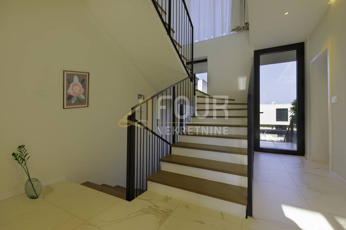 Interijer vile je moderan i funkcionalan, s naglaskom na kvalitetu izvedbe i udobnost.