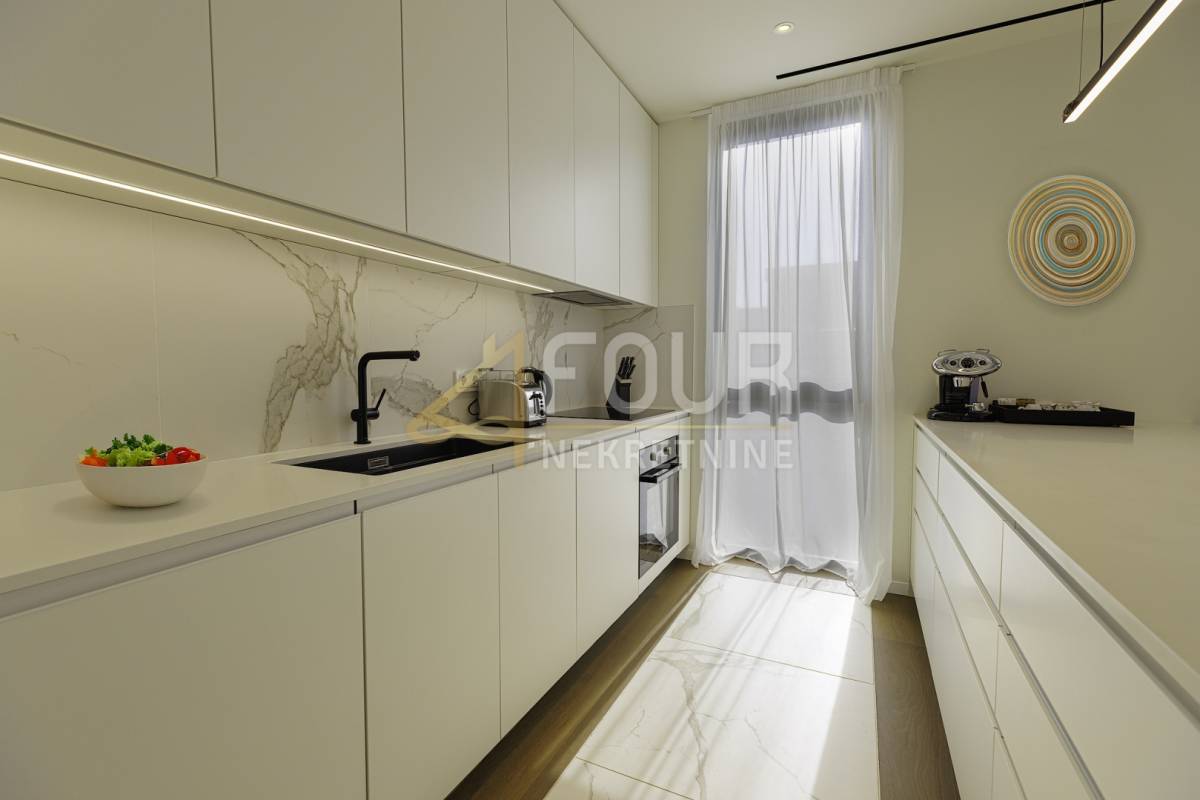 Cijeli resort odiše visokom kvalitetom gradnje i vrhunskim sadržajima, uključujući rooftop infinity bazen s pogledom na more, moderno opremljen fitness, saune, vrhunski restoran i teniske terene.
