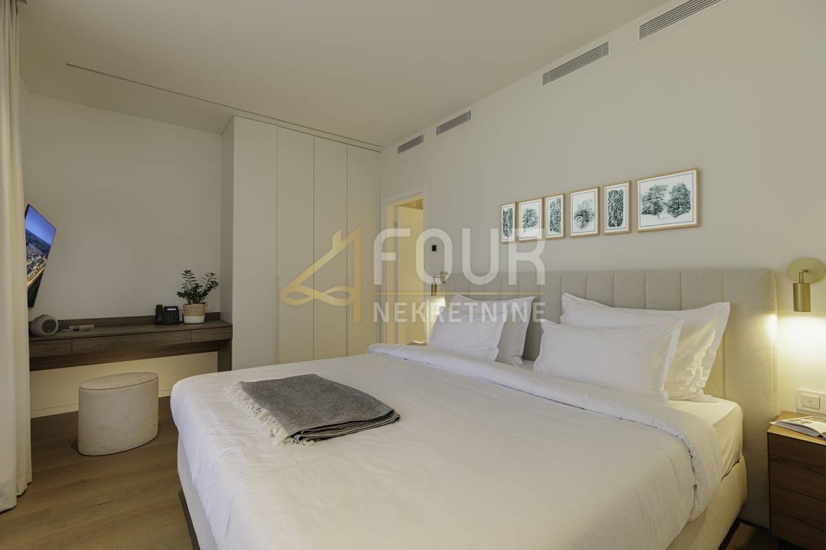 Cijeli resort odiše visokom kvalitetom gradnje i vrhunskim sadržajima, uključujući rooftop infinity bazen s pogledom na more, moderno opremljen fitness, saune, vrhunski restoran i teniske terene.