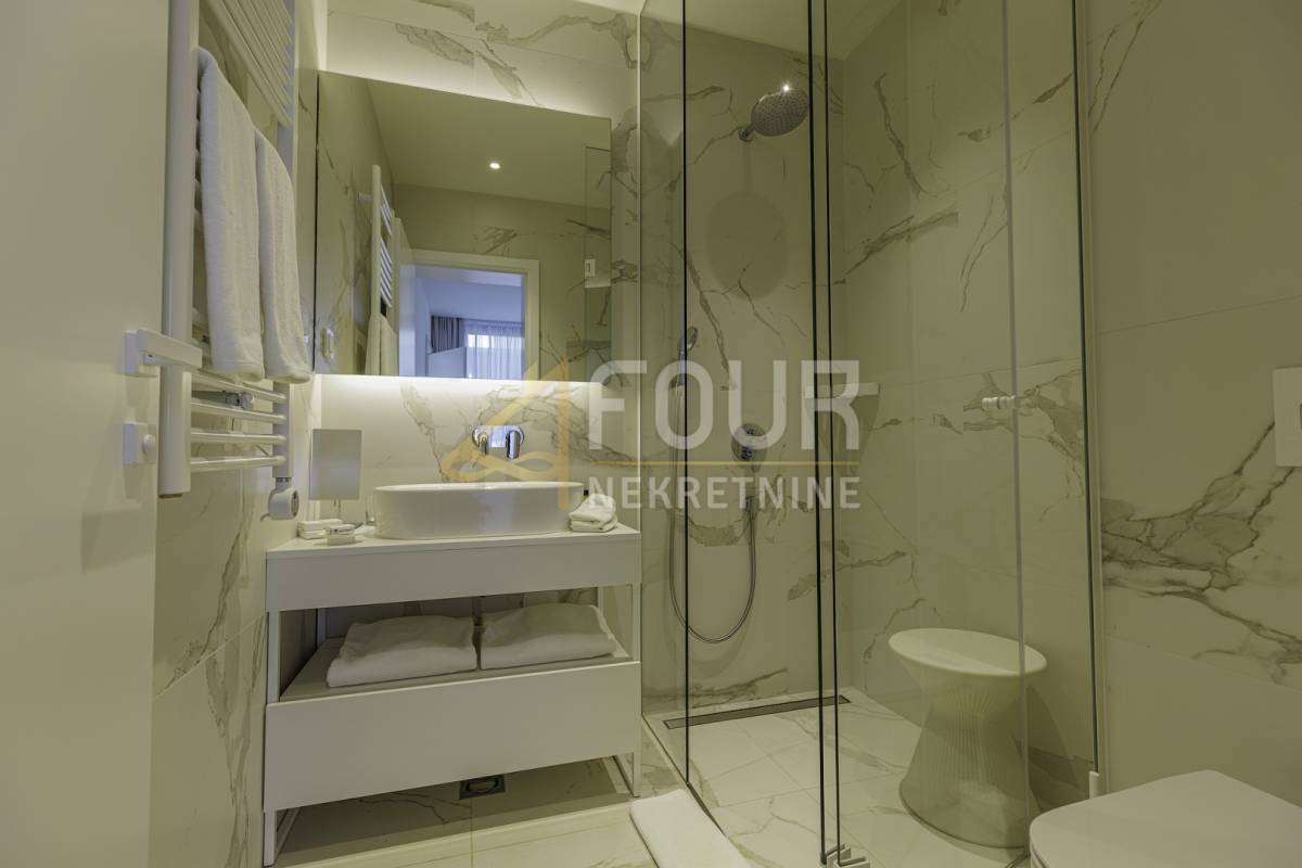 Cijeli resort odiše visokom kvalitetom gradnje i vrhunskim sadržajima, uključujući rooftop infinity bazen s pogledom na more, moderno opremljen fitness, saune, vrhunski restoran i teniske terene.
