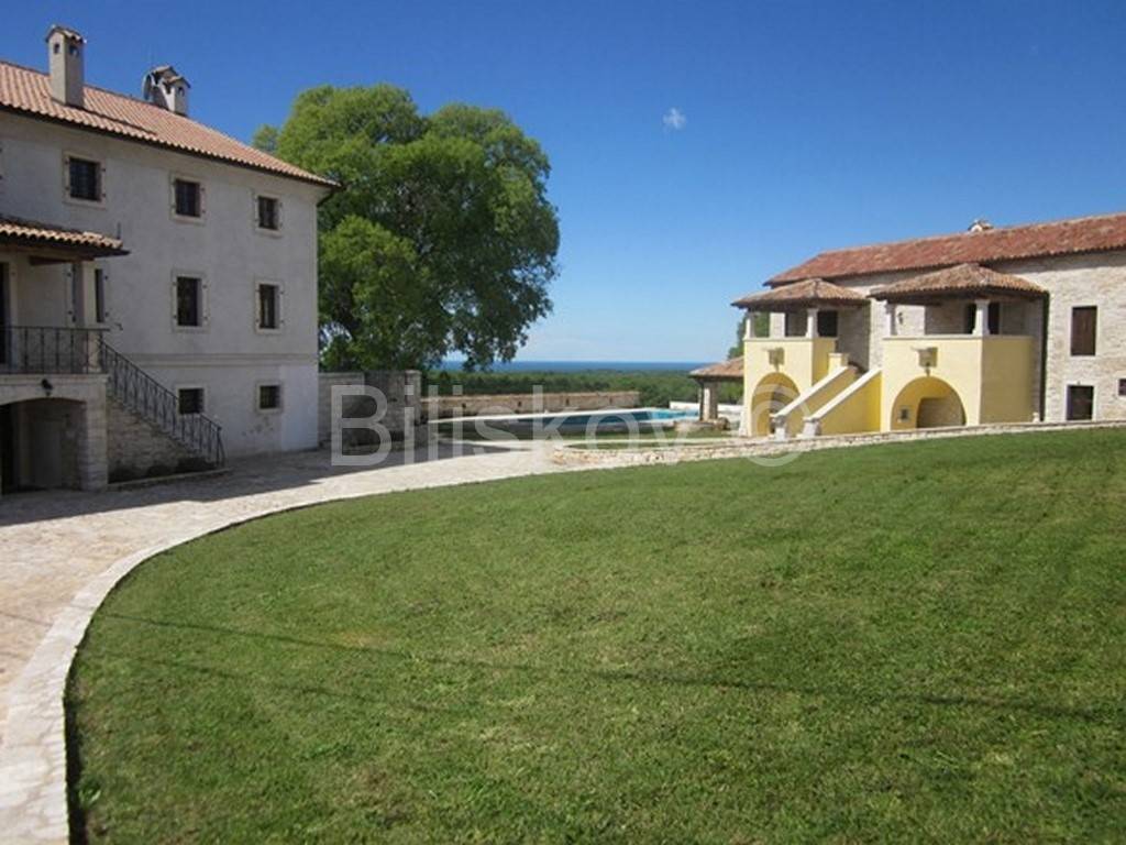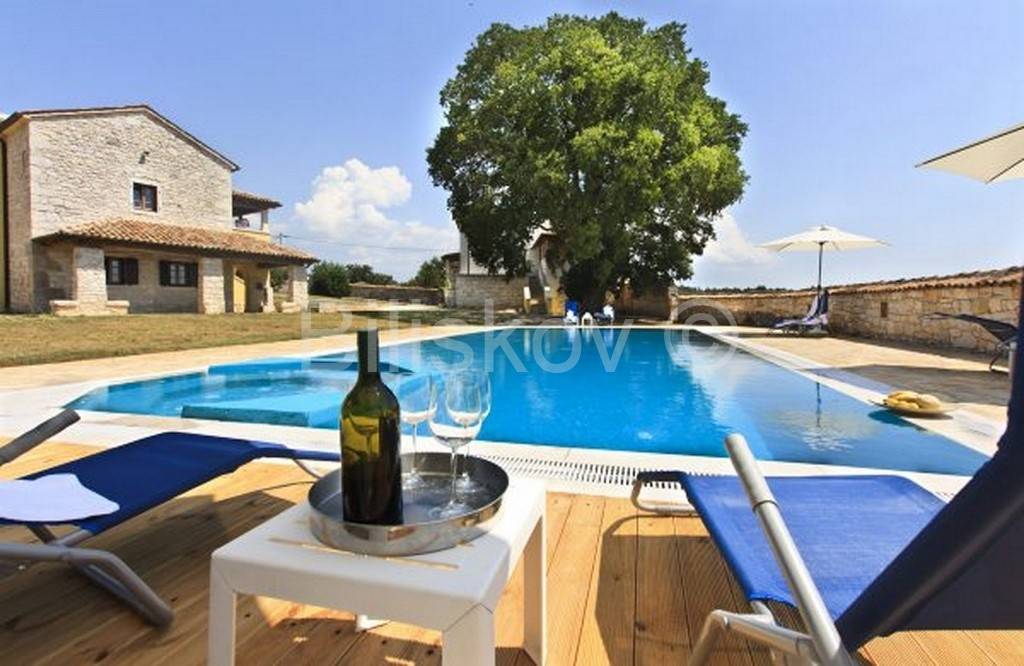 Dvije luksuzno uređene i opremljene vile ukupne stambene površine 850 m2 na parceli od 3030 m2 opasanoj kamenim istarskim zidom sa 2 zasebna ulaza na imanje. Vile se nalaze u samom srcu Istre, 8 km od mora, okružene vinogradima.
