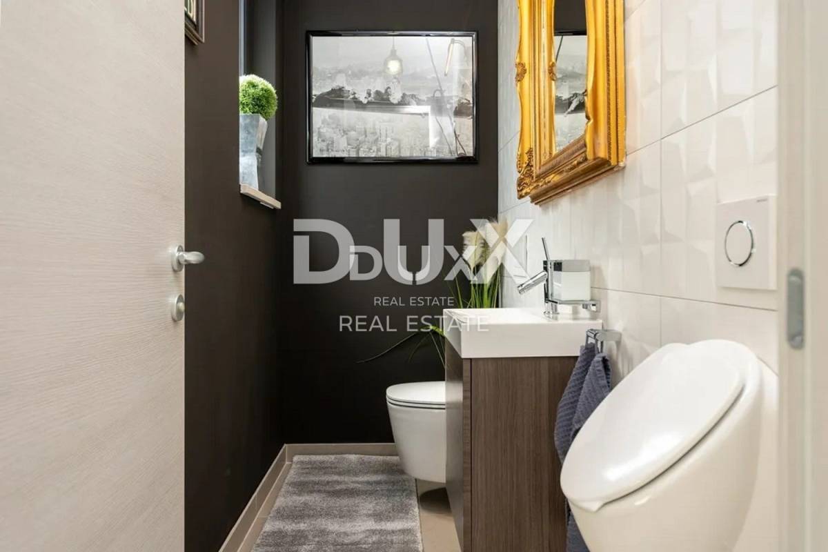 Na katu su smještene još četiri elegantno uređene spavaće sobe, svaka s vlastitom luksuznom kupaonicom, a dodatnu vrijednost prostoru daju dvije velike terase s pogledom na zelenilo i miran, prirodni krajolik koji okružuje kuću.