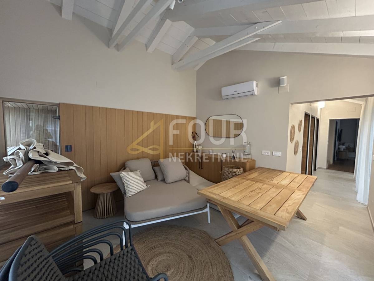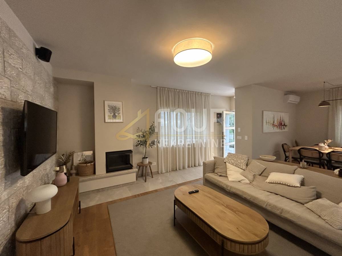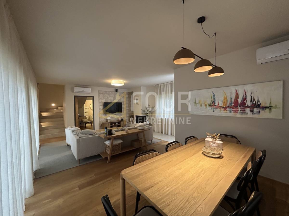 Vila je samostojeća, građena 2023. godine, uređena u visokom standardu i opremljena svim elementima potrebnim za vrhunsku udobnost. Prostire se na ukupno 191,98 m2 raspoređenih na prizemlje i prvi kat, a smještena je na parceli od 693 m2 s lijepo uređenom okućnicom, mediteranskim biljem, privatnim parkingom i bazenom površine 28 m2.