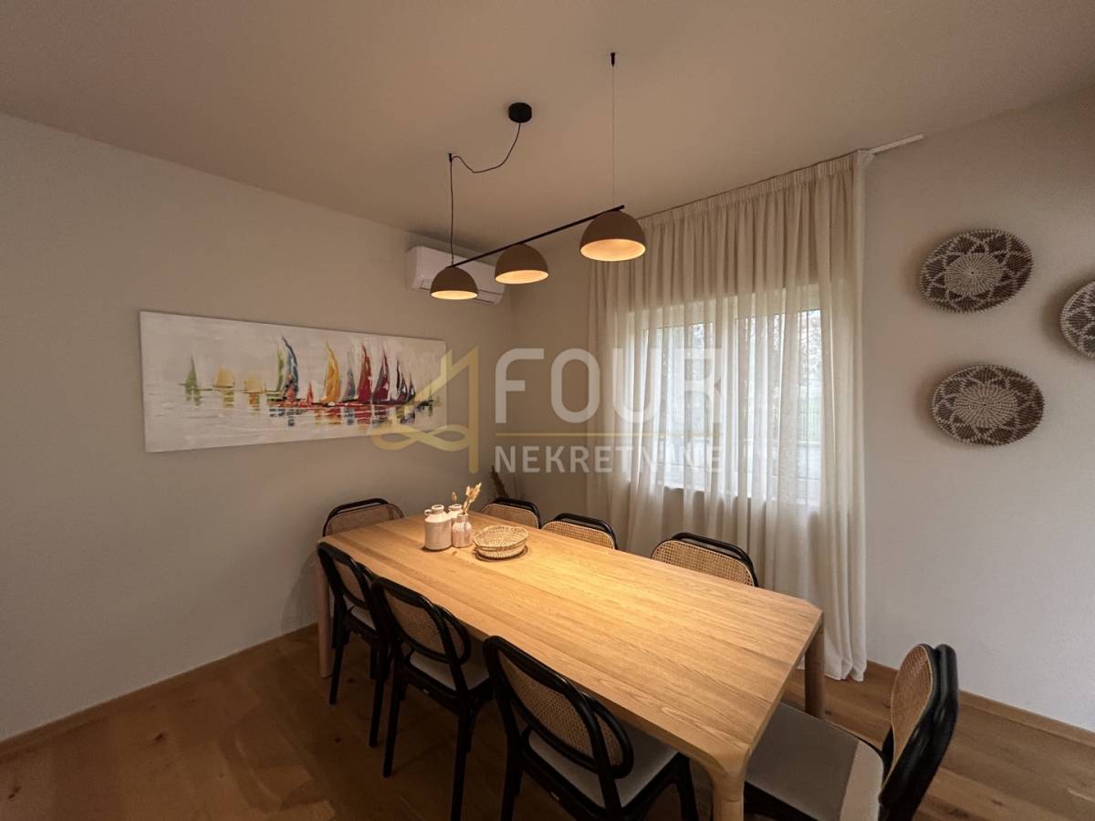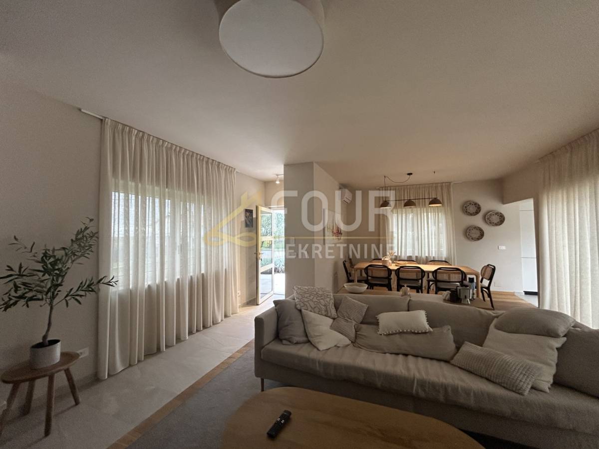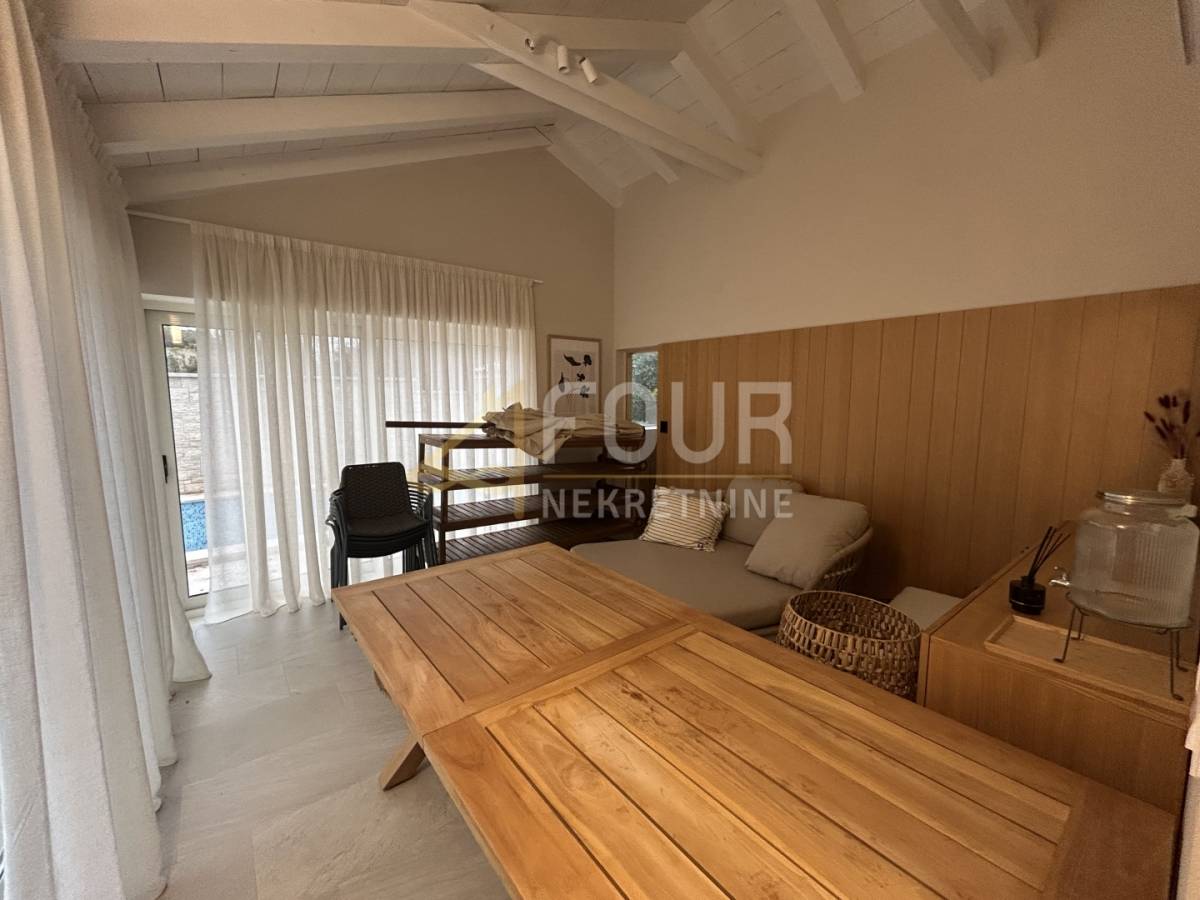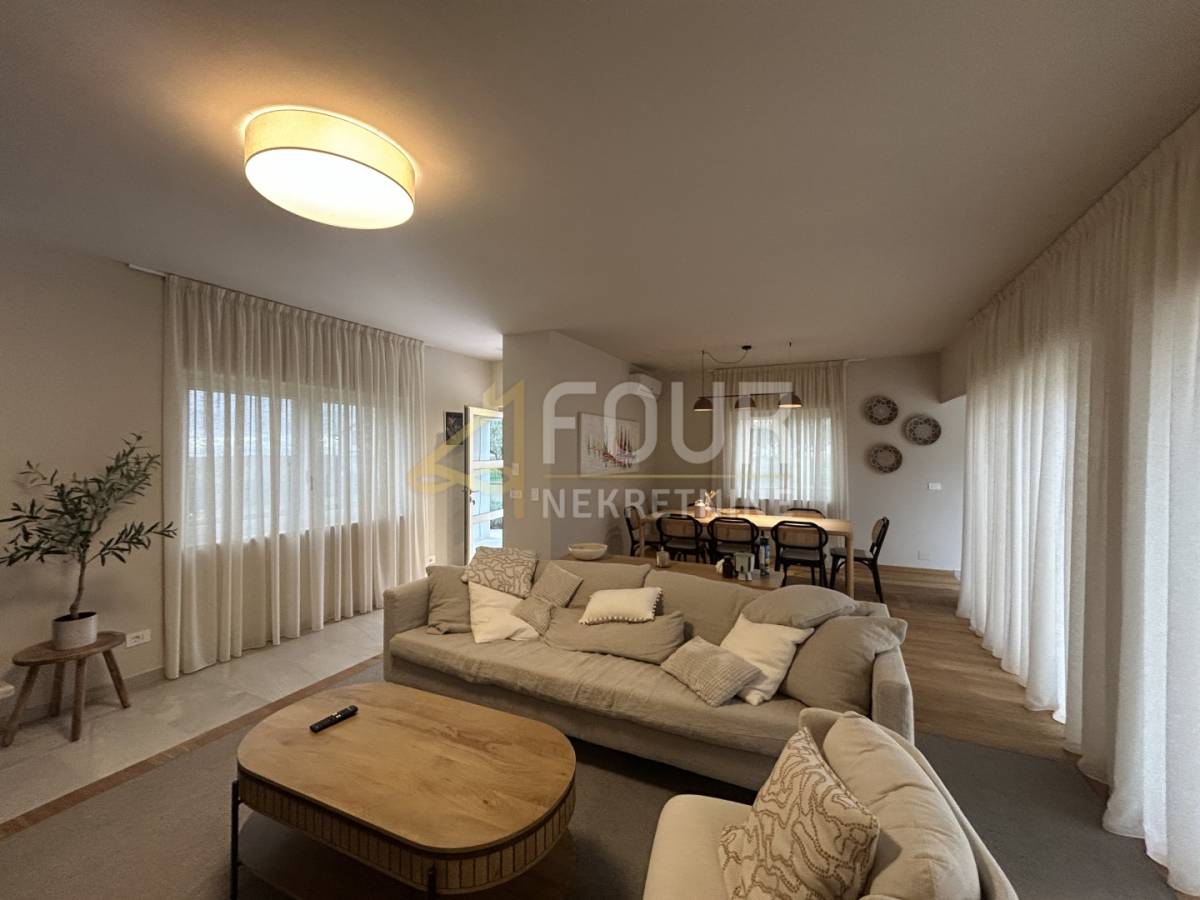 Vila je samostojeća, građena 2023. godine, uređena u visokom standardu i opremljena svim elementima potrebnim za vrhunsku udobnost. Prostire se na ukupno 191,98 m2 raspoređenih na prizemlje i prvi kat, a smještena je na parceli od 693 m2 s lijepo uređenom okućnicom, mediteranskim biljem, privatnim parkingom i bazenom površine 28 m2.