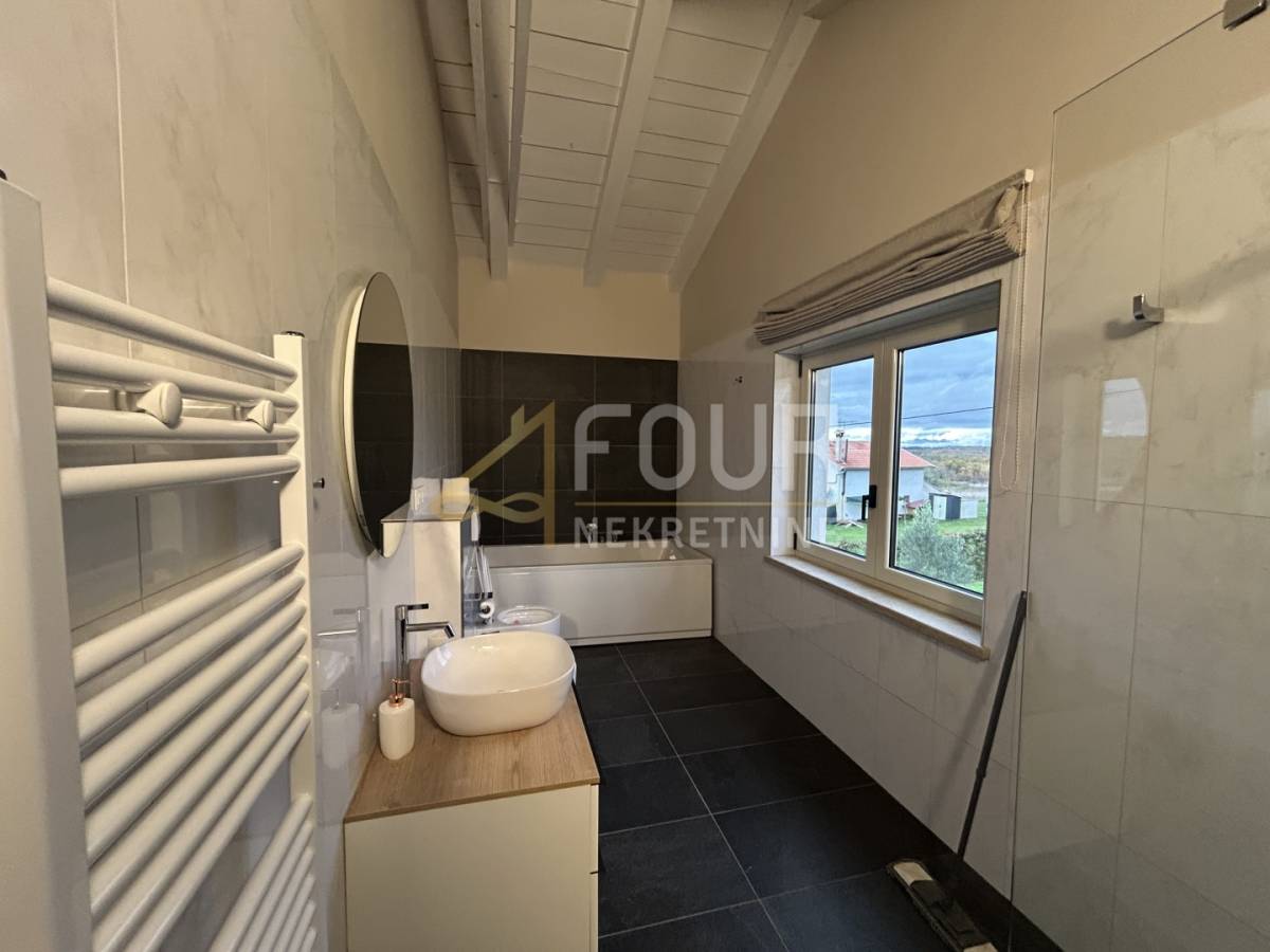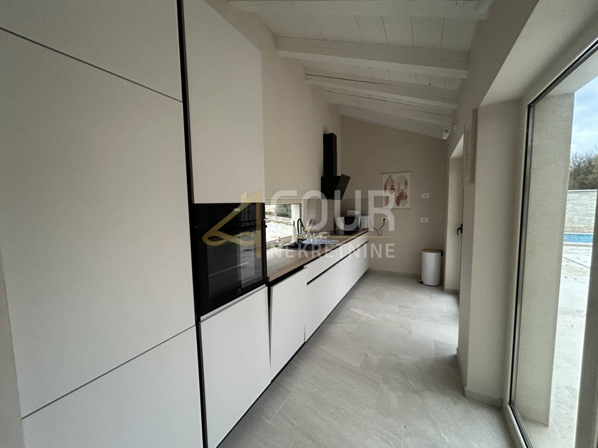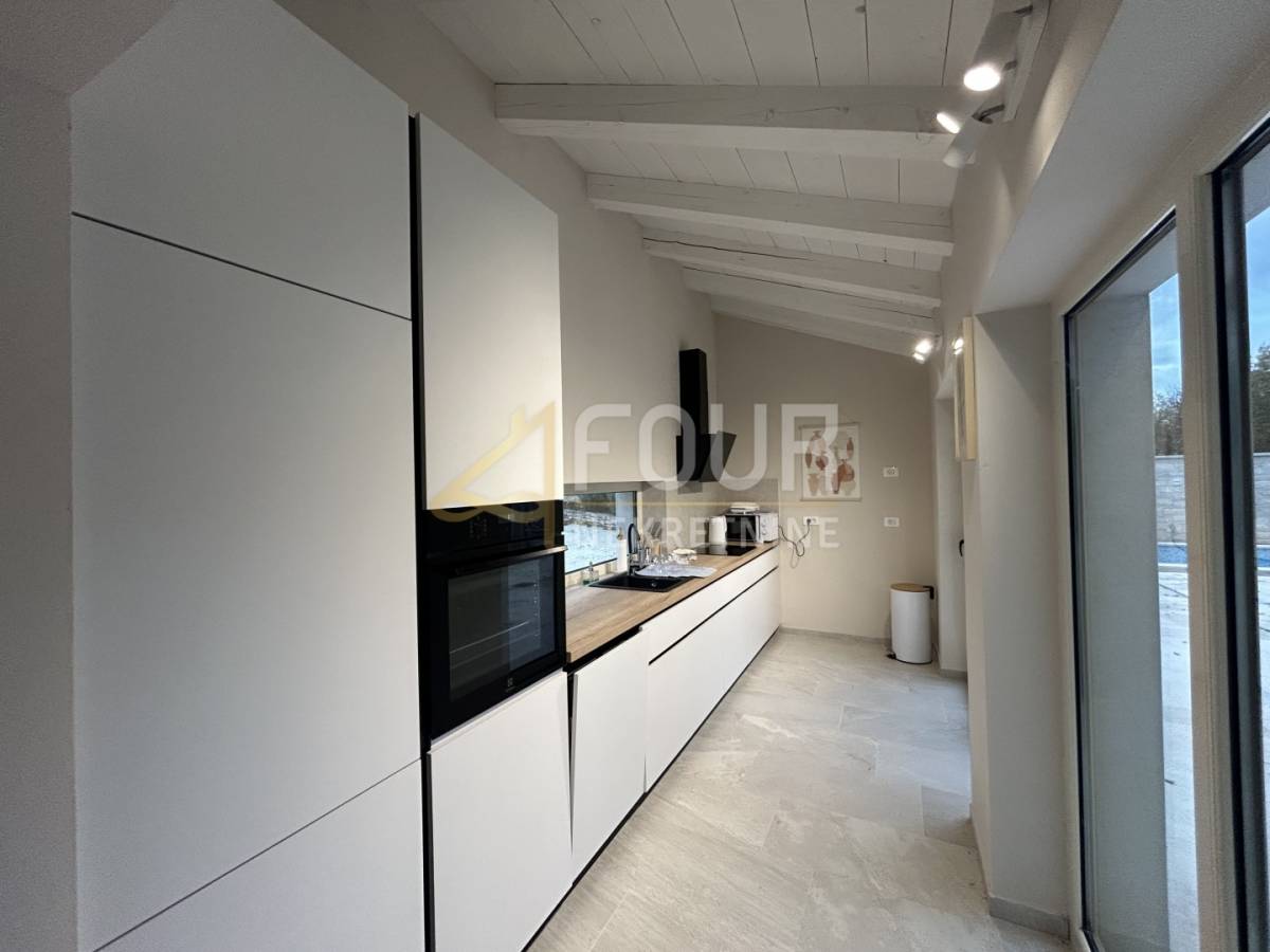 Prodaje se prekrasna moderna kamena vila smještena na mirnoj lokaciji u okolici Višnjana, s predivnim pogledom na more u daljini i svega dvanaest kilometara udaljena od Poreča.