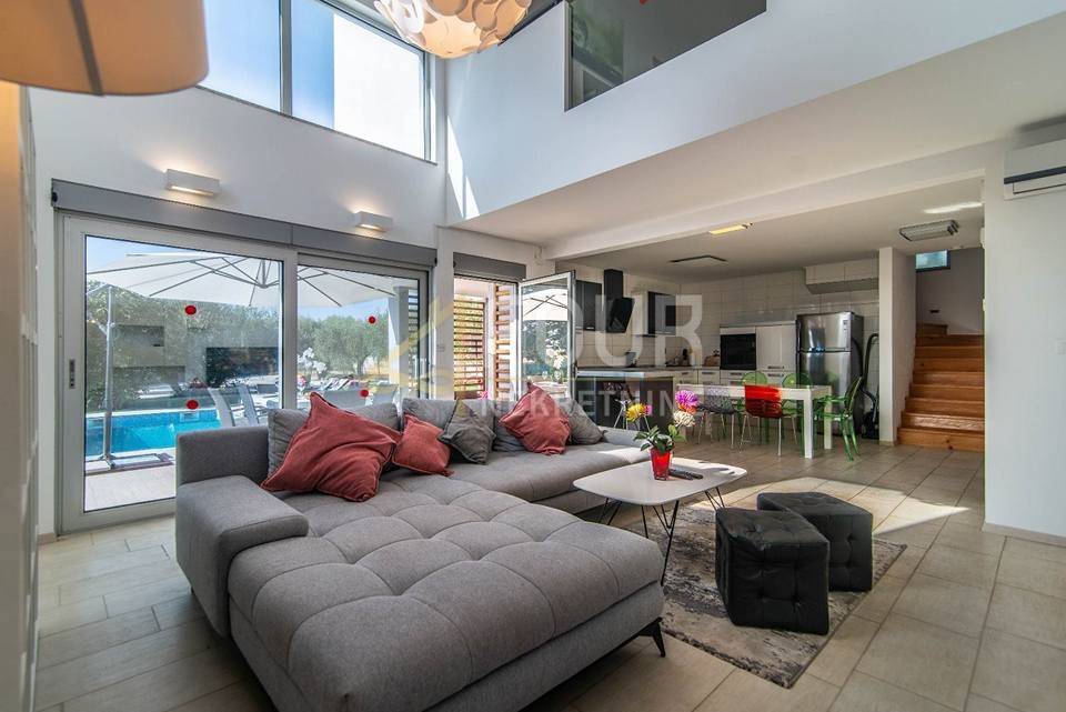 Vila je izgrađena 2015. godine i opremljena je modernim sustavima za udobnost i sigurnost – podno grijanje, dizalice topline, klimatizacija, električne rolete, protuprovalna vrata, video nadzor i alarmni sustav. U dvorištu se nalazi grijani bazen od 42 m, hortikulturno uređeni vrt s automatskim navodnjavanjem te čak sedam i više parkirnih mjesta. Dodatna vrijednost je solarna elektrana od 8,6 kW s punjačem za električne automobile.
