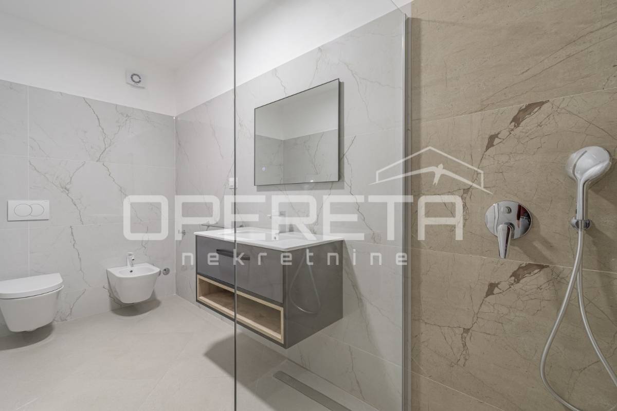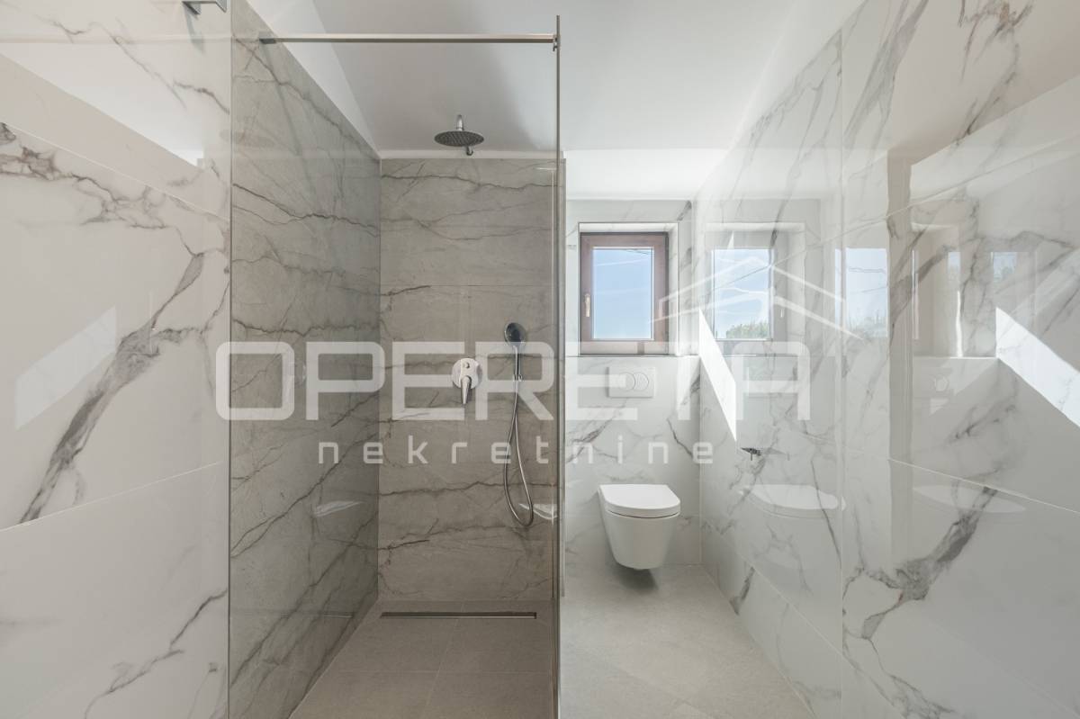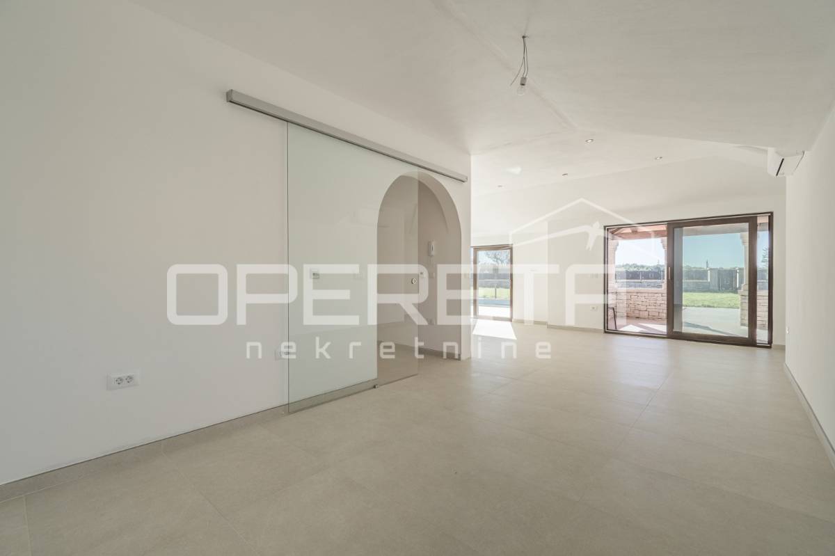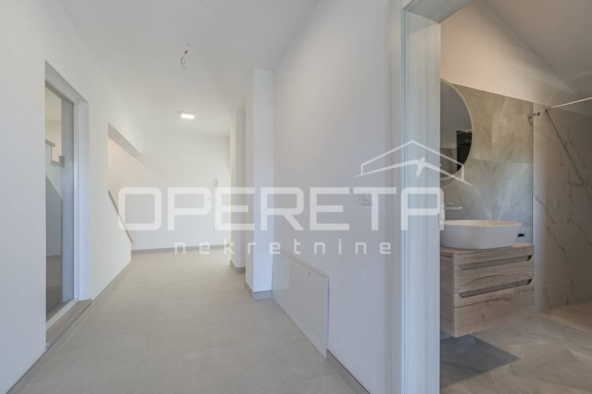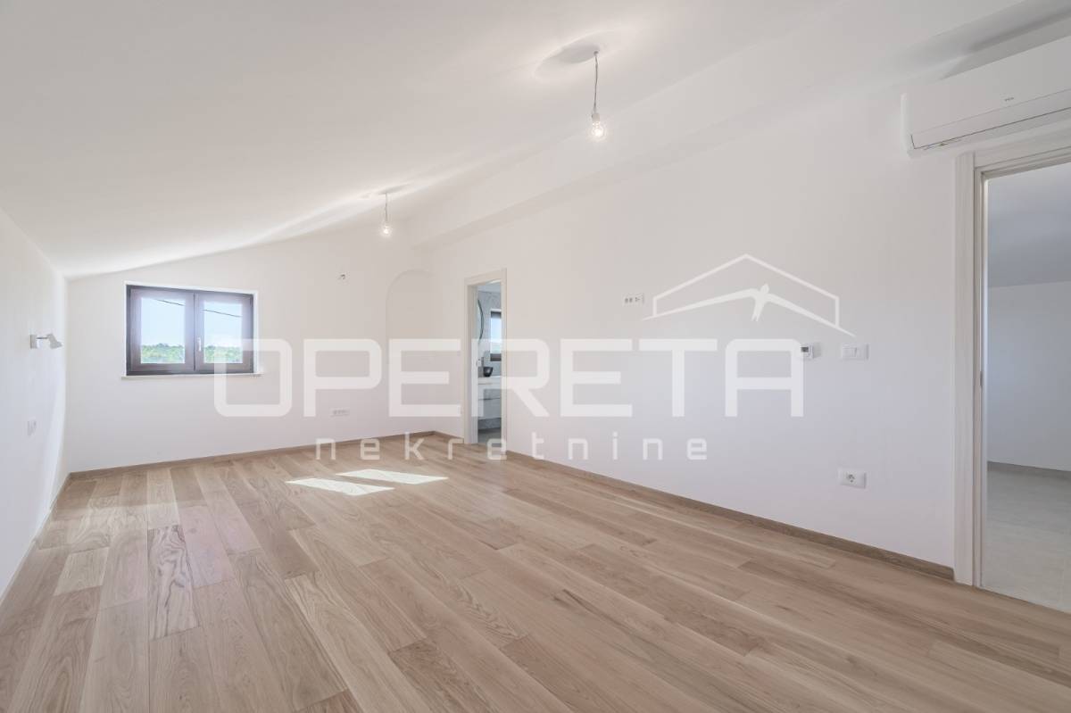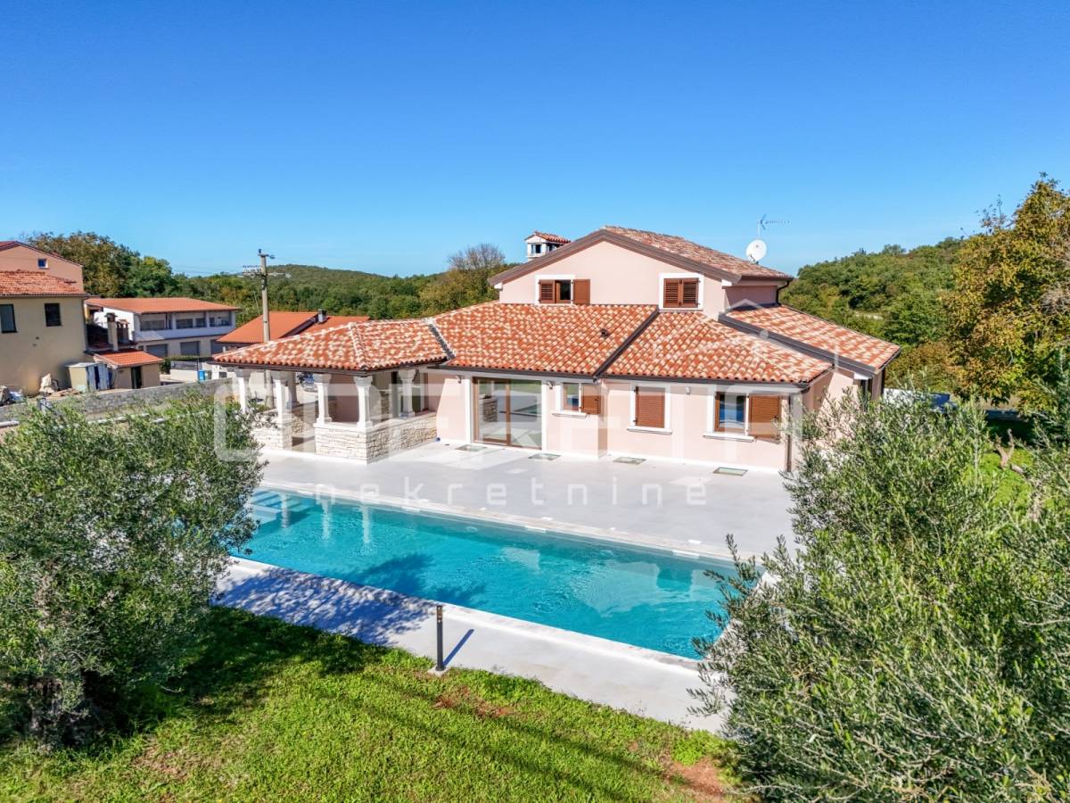 Prvi kat obuhvaća ulazni prostor, tri spavaće sobe, svaka s vlastitom kupaonicom, prostrani dnevni boravak otvorenog plana koji se spaja s kuhinjom i blagovaonicom te izlazi na terasu i bazen, kao i jedno zajedničko kupatilo. Na drugom katu smještena je glavna spavaća soba s privatnom kupaonicom i garderobnim prostorom, koja čini savršeno intimno utočište. Grijanje je riješeno podnim sustavom u svim prostorijama, uz dodatnu udobnost klima uređaja i kamina.
