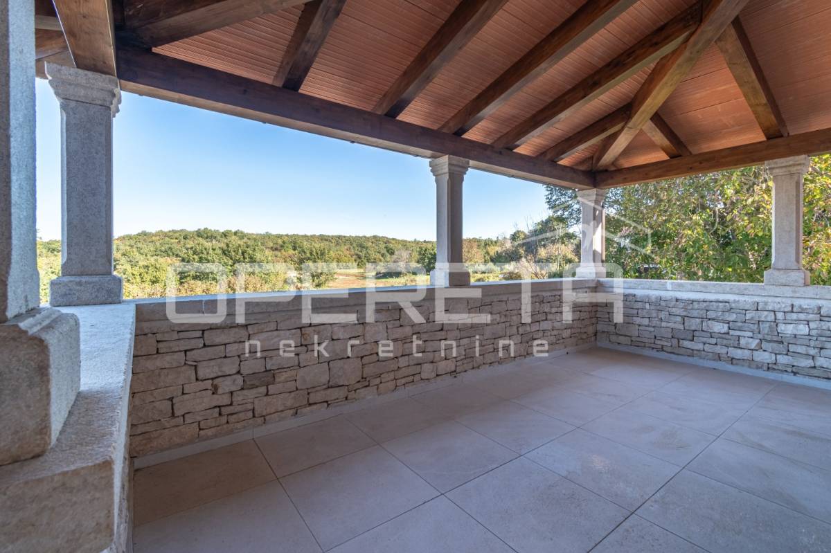 Kombinacija prirodnih elemenata poput kamena i drva daje kući izniman karakter i toplinu, dok suvremeni detalji osiguravaju potpunu udobnost i luksuz.