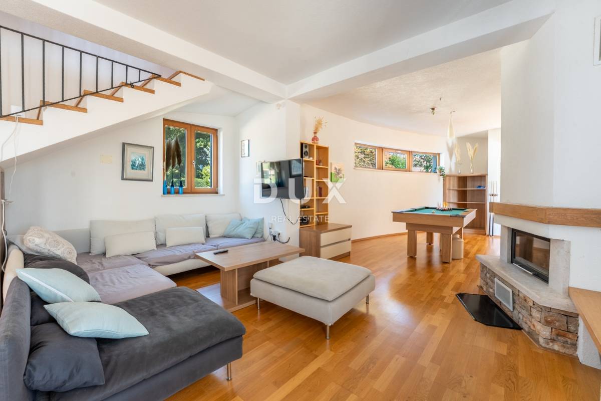 Interijer je suvremeno uređen i opremljen kvalitetnim namještajem, s pažljivo biranim detaljima koji prostoru daju poseban šarm. Ugodnu atmosferu dodatno naglašava kamin smješten u prostranom dnevnom boravku.