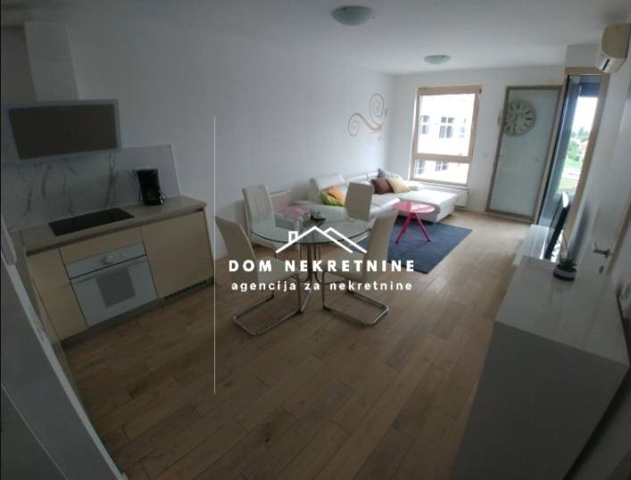 Sastoji se od ulaznog prostora, velikog dnevnog boravka i blagovaone, opremljene kuhinje, spavače sobe i kupaone. U cijenu najma uključeno je i parkirno mjesto u podzemnoj garaži.