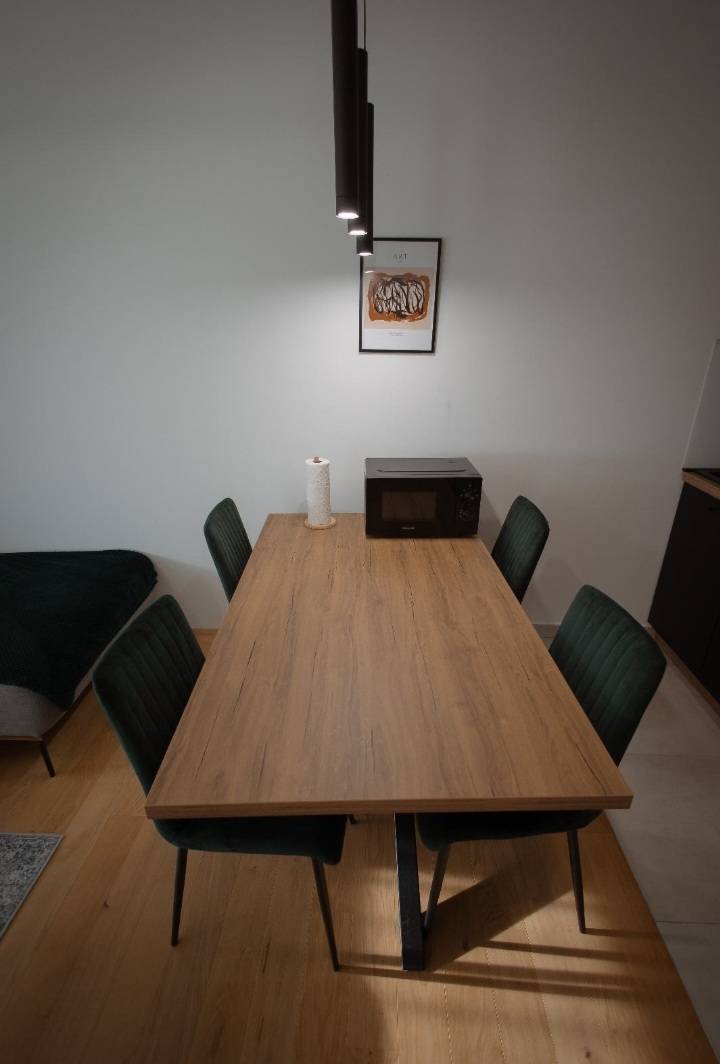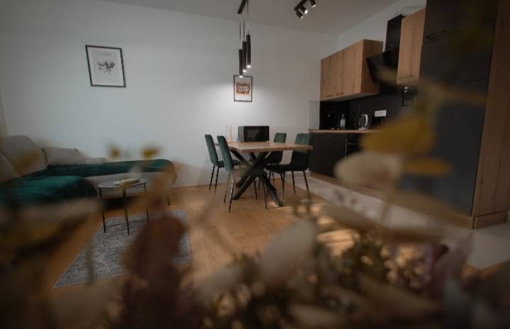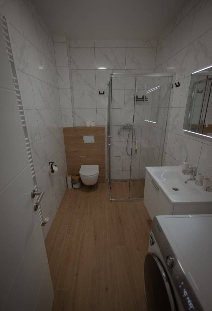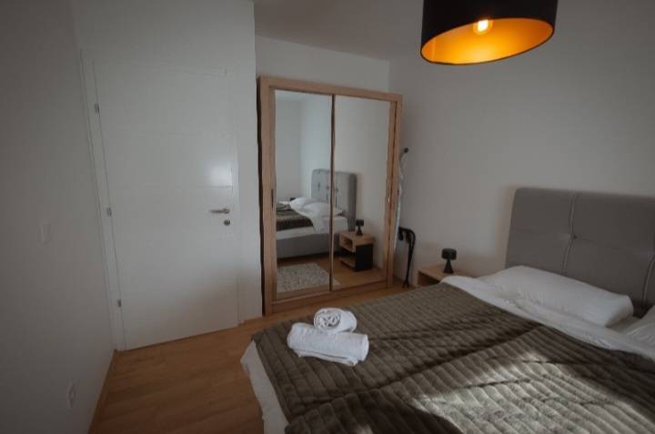 Stan je potpuno opremljen: smart TV, perilica posuđa, perilica i sušilica rublja, klima uređaj, kompletno posuđe te svi potrebni kuhinjski aparati.