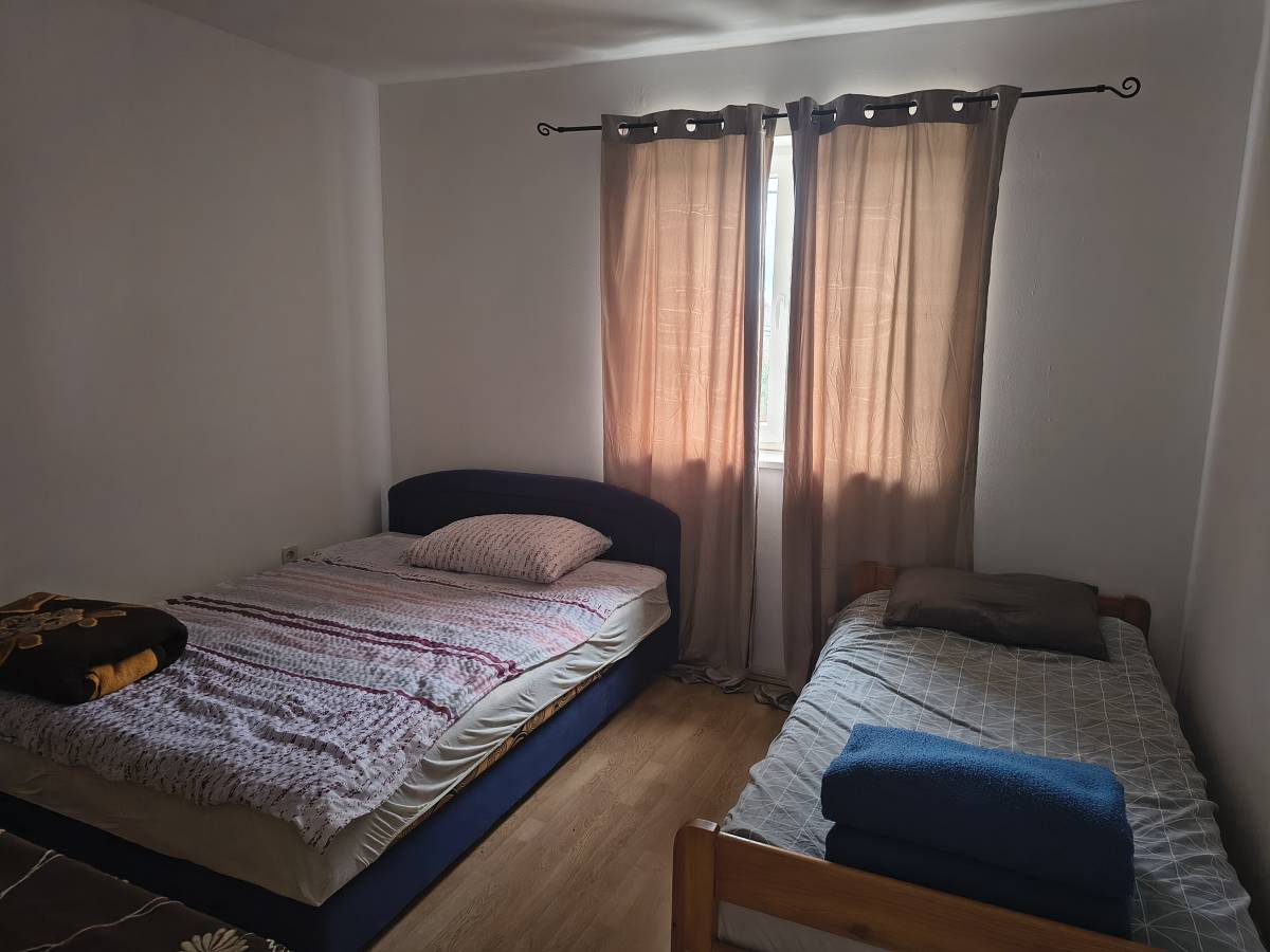 Iznajmljuje se 4-sobni stan od 110m², na dugoročno, za obitelji ili radnike. Izražena cijena je za obitelji, dok je cijena za radnike po dogovoru. Stan ima kuhinju, kupatilo, dnevni boravak, 3 spavaće sobe i ostavu te 2 mala balkona. Režije se plaćaju po potrošnji.