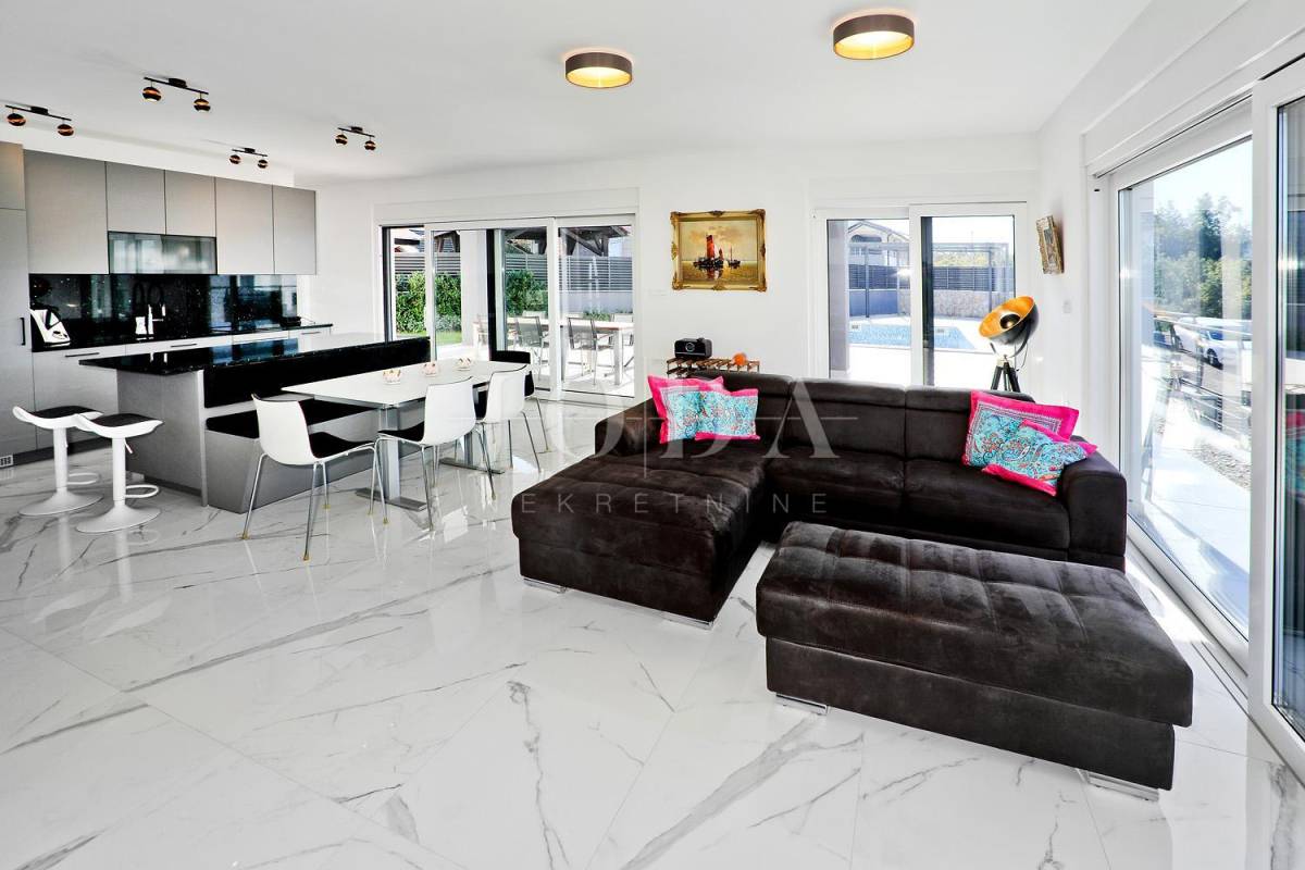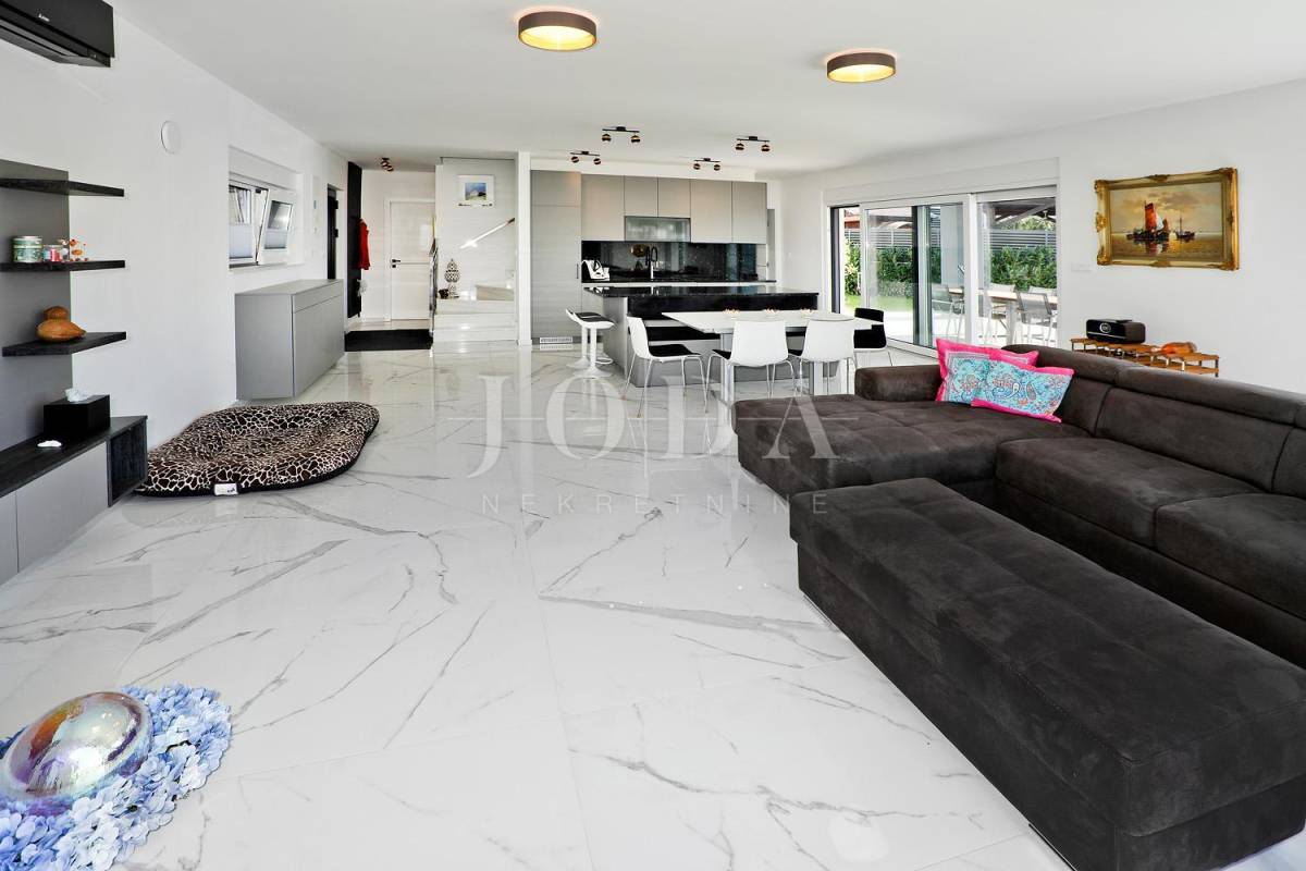 Villa površine cca 165 m2, sagrađena je na parceli površine 651 m2. Prizemlje se sastoji od kuhinje, dnevnog boravka i kupaone, toaleta, spremišta sa dodatnim toaletom i ostave. Na katu su 3 sobe od toga 2 spavaće sobe i jedna garderoba koja lako može biti prenamijenjena u još jednu spavaću sobu.