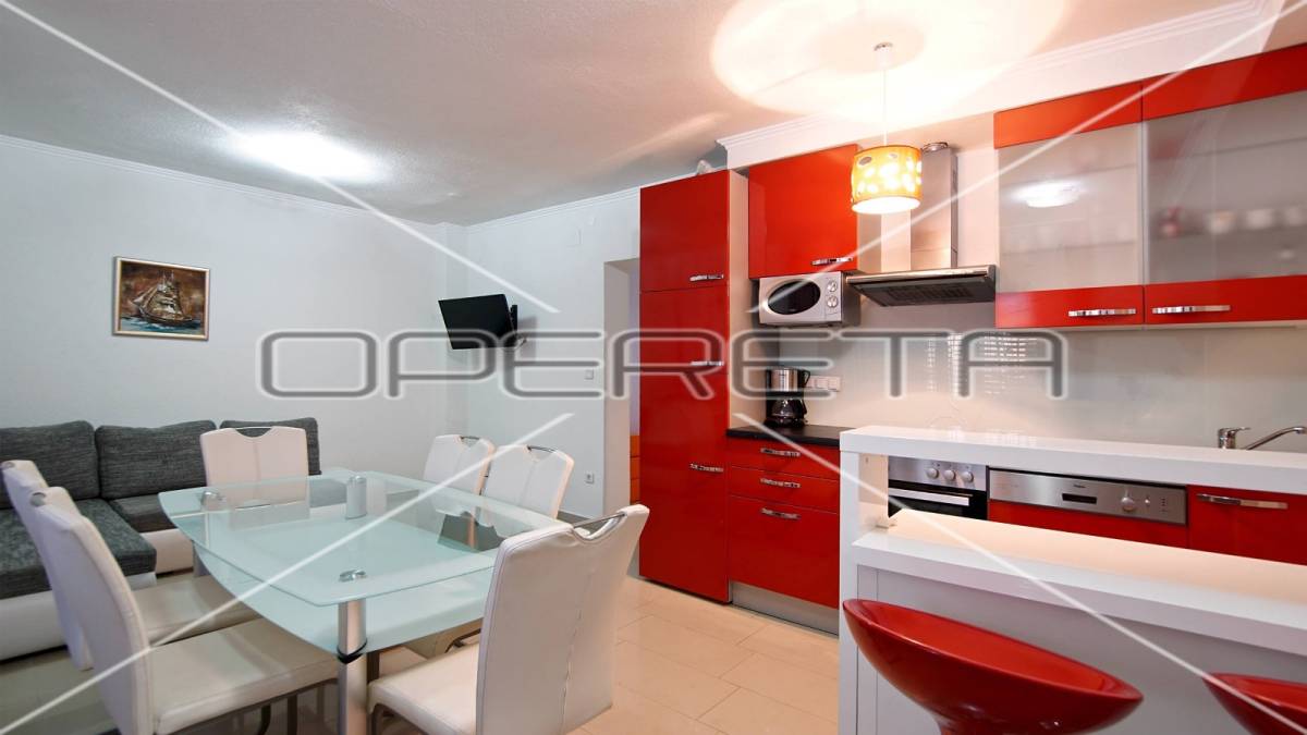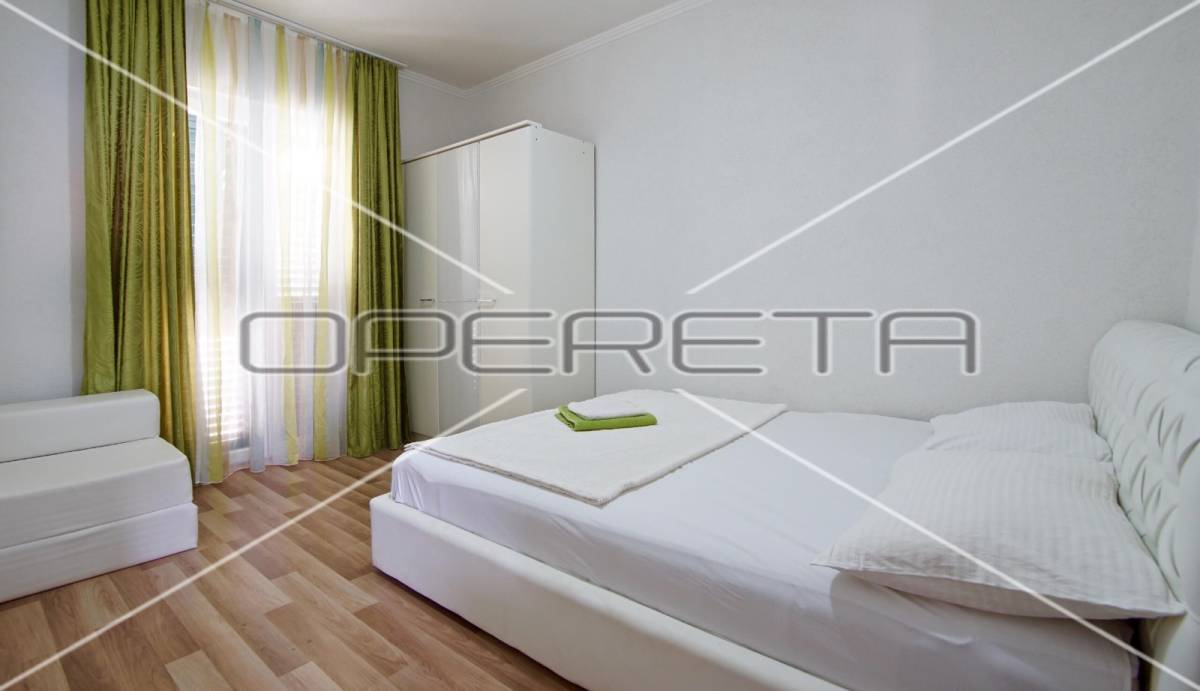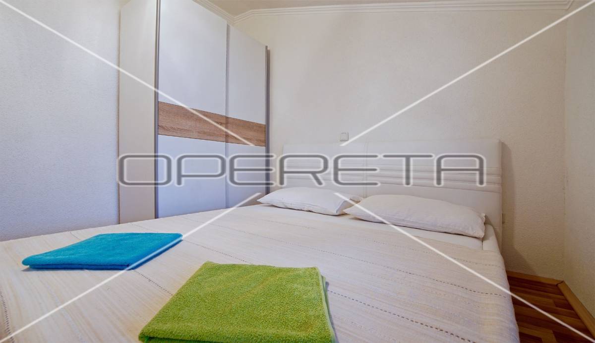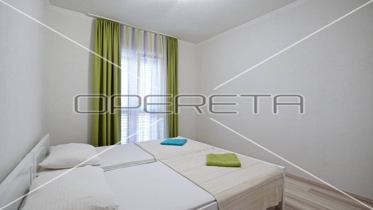 Zgrada s 8 odvojenih apartmana, okućnicom i parkingom smještena je stotinjak metara do mora, u mirnoj obiteljskoj ulici.