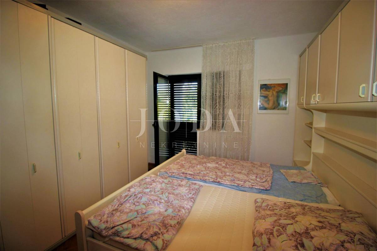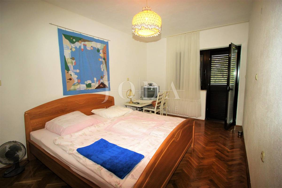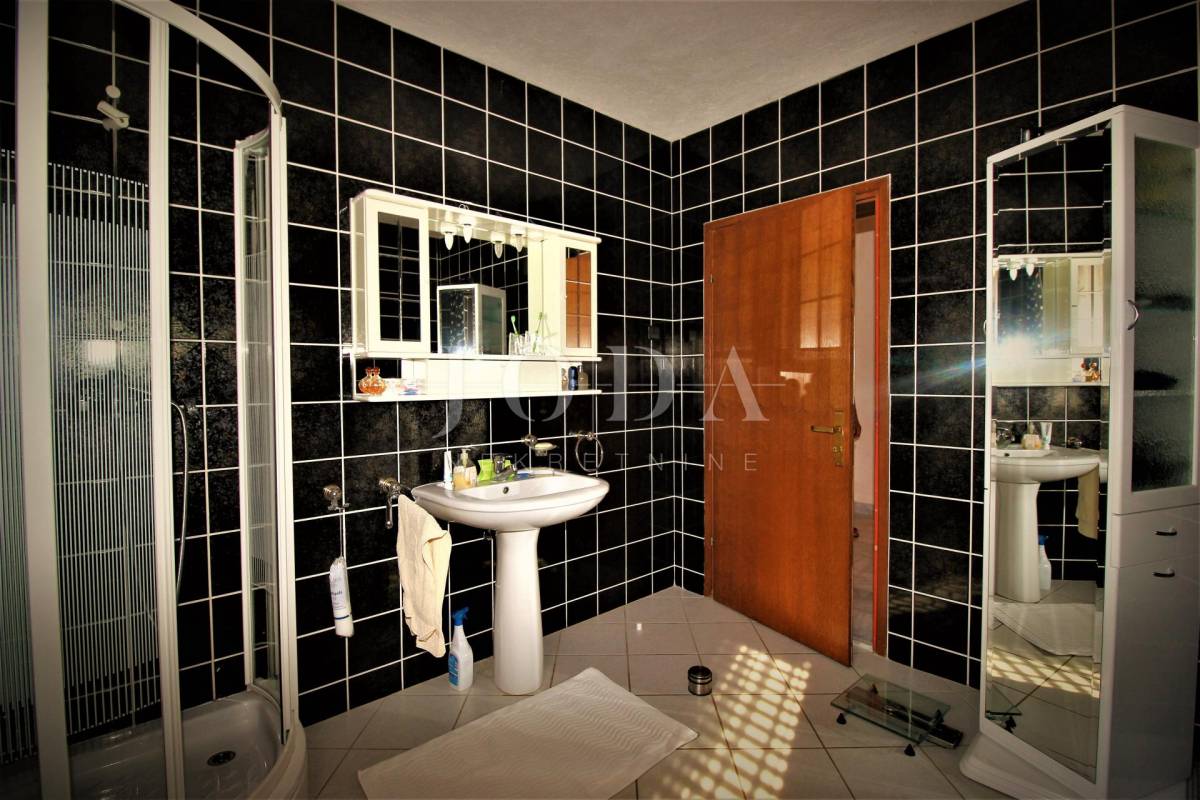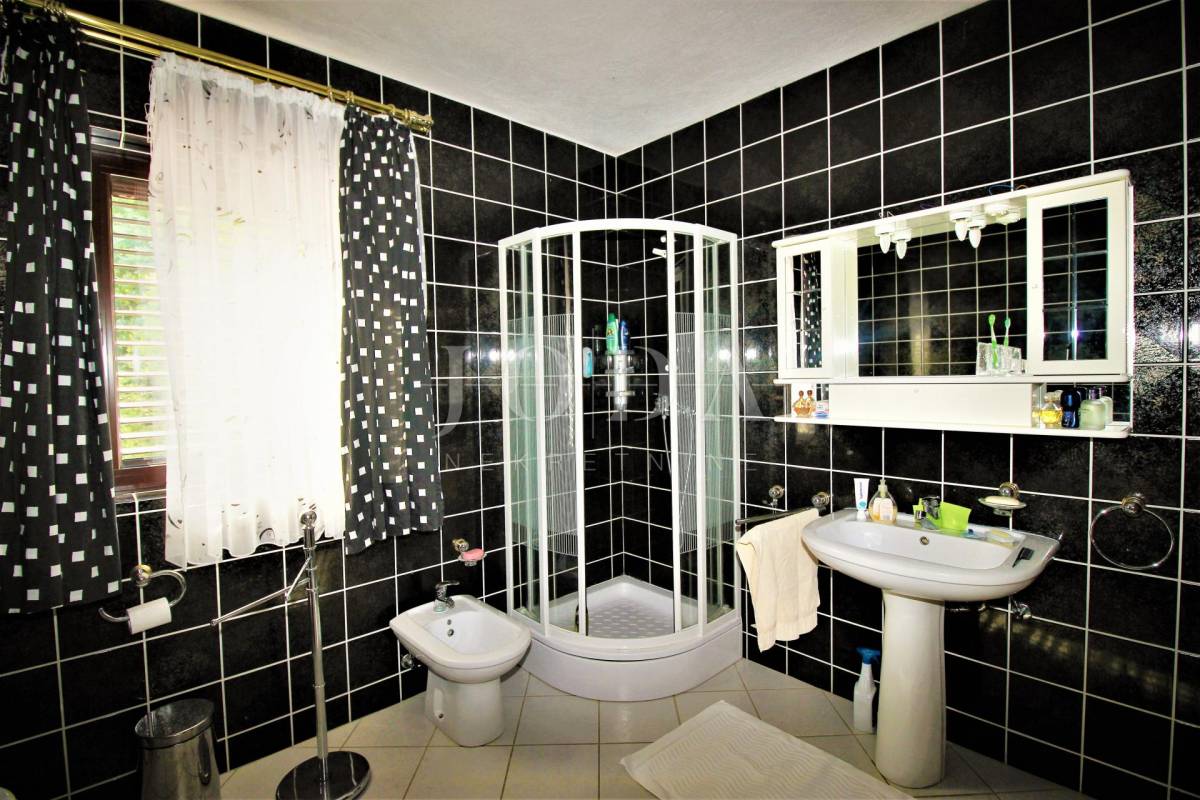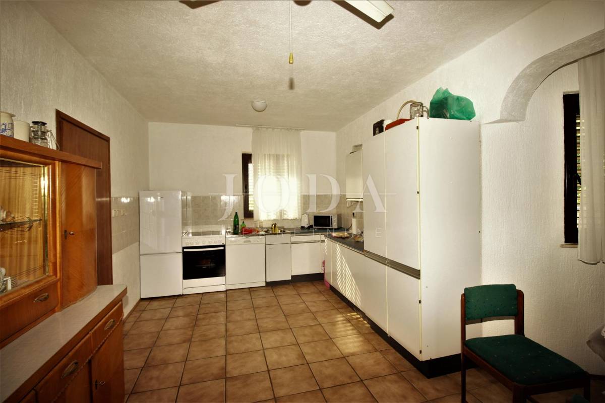 Prodajemo kuću na tri etaže ukupne površine 259m2, sa okućnicom od 174m2 i građevisnkim terenom 1036,80m2. U suterenu kuće nalazi se konoba, sanitarni čvor, vešeraj i garaža. Na prvom katu je kuhinja sa blagovaonicom i dnevnim boravkom otovorenog koncepta, te toalet i terasa. Unutanjim stepenicama ide se na prvi kat gdje se nalaze tri spavaće sobe, kupaona i balkon. U potkrovlju su dvije spavaće sobe, kupaona i terasa sa koje se pruža prekrasni pogled na more. Nekretnaina u oazi zelenila i mira idealna za odmor, ali i za truistički najam.