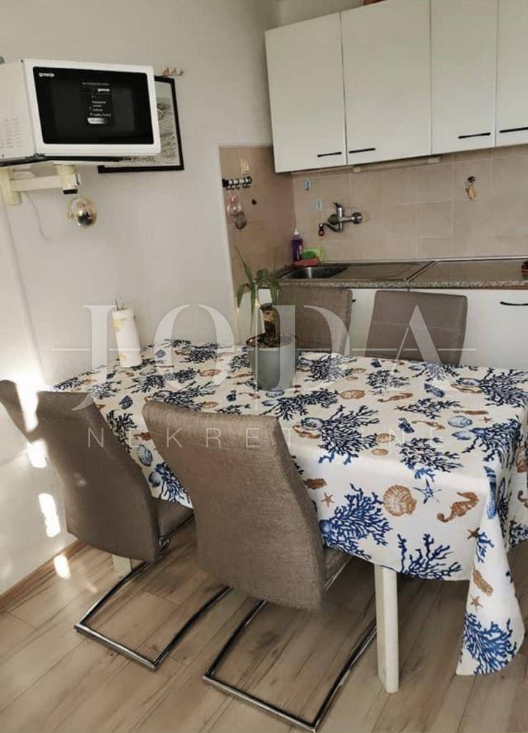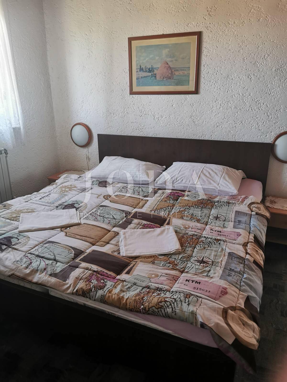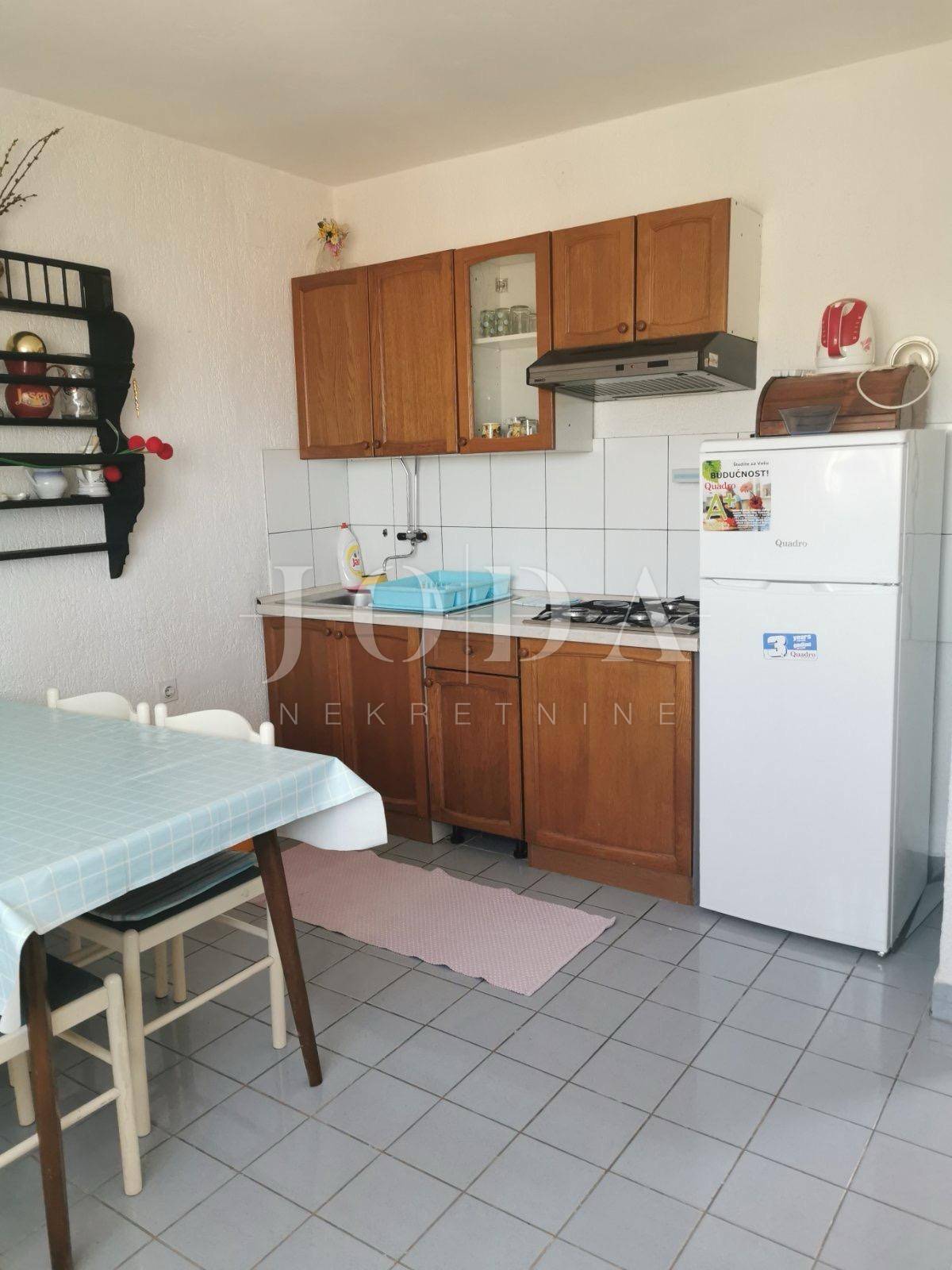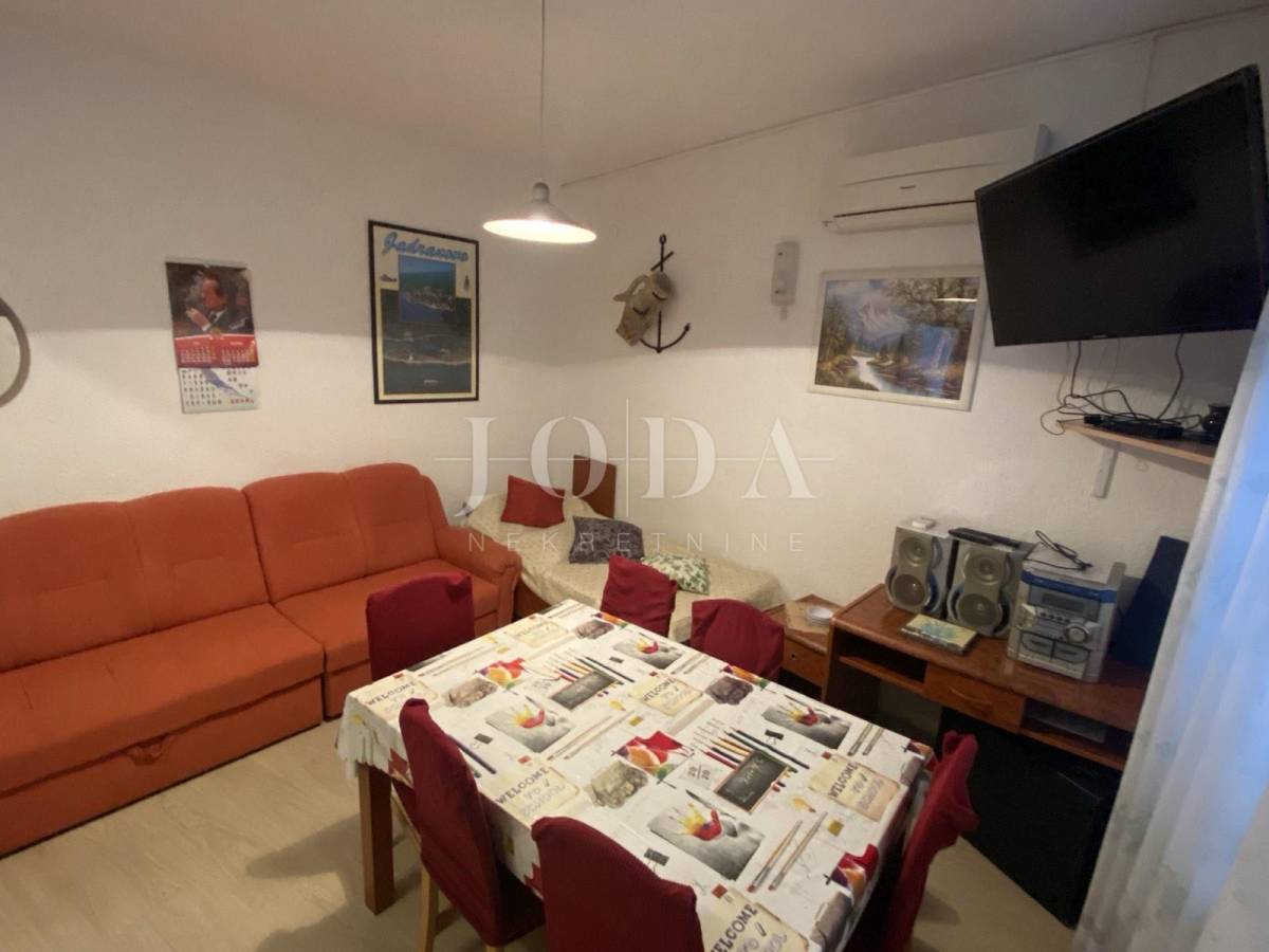 Prodajemo kuću u Jadranovu na odličnoj lokaciji. Kuća ima veliki turistički potencijal iako zahtjeva osvježenje. Sastoji se od 5 zasebnih jedinica od toga 3 jednosobna apartmana sa dnevnim boravkom i 2 manja studio apartmana u pomoćnom objektu. Kuća je u funkciji turizma. Klima u svakom apartmanu, cantralno grijanje na naftu.
