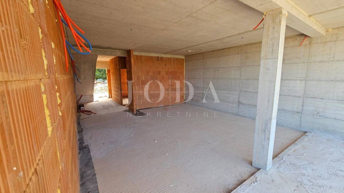 Prizemlje: prostrani dnevni boravak s blagovaonicom, kuhinja, spavaća soba, kupaonica, stubište i loggia.