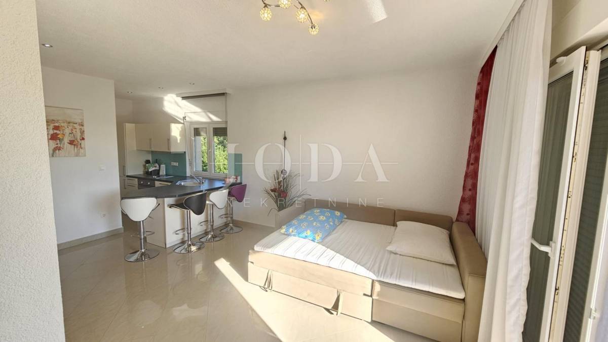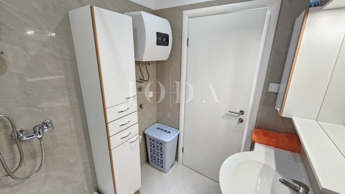 Stan se sastoji od kuhinje s blagovaonicom, dnevnog boravka s izlazom na terasu te kupaonice. Uz stan dolaze i dvije dodatne prostorije u vlasništvu – spremište (3 m2) i vešeraj (5,5 m2), što ga čini posebno funkcionalnim.