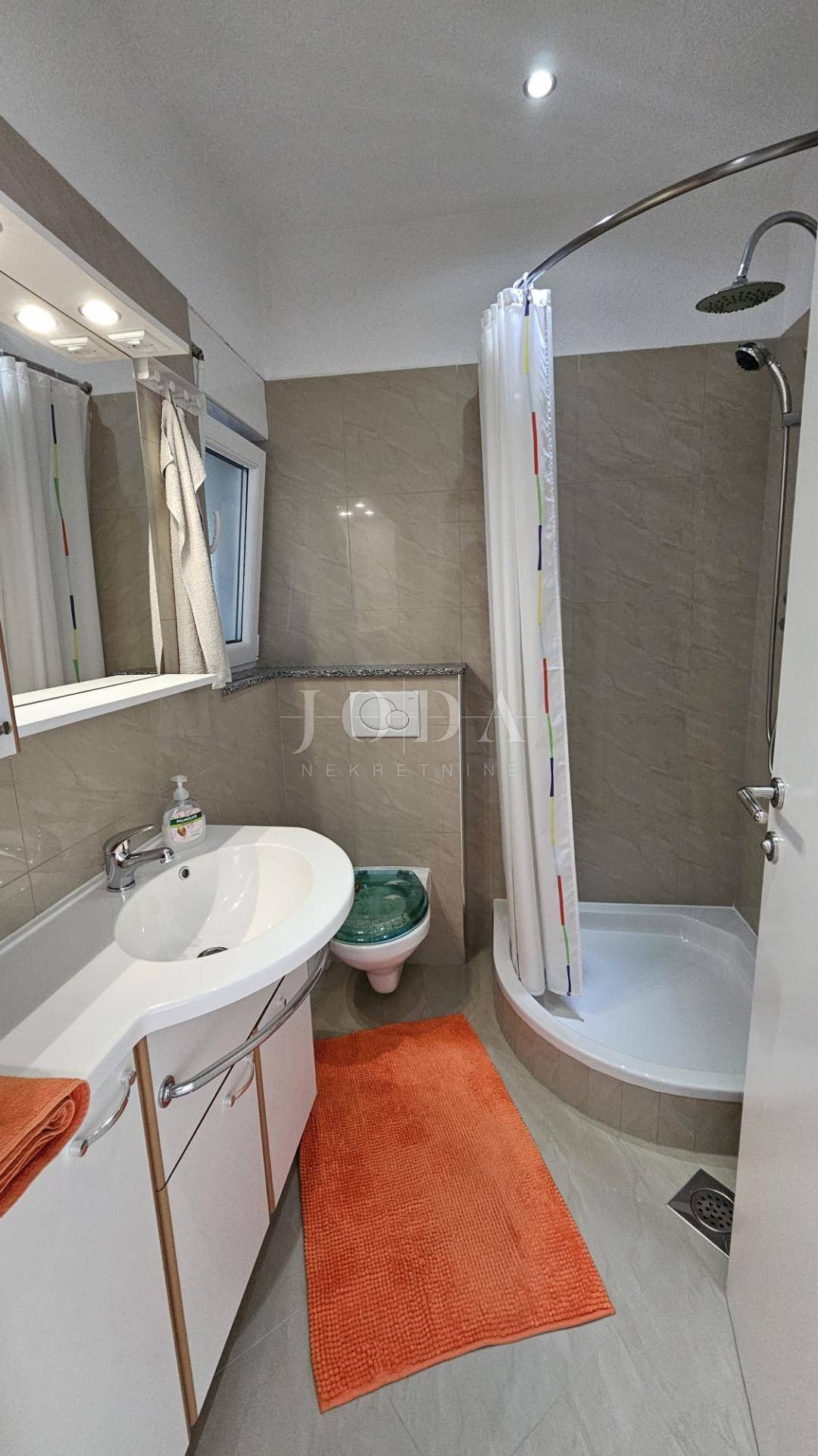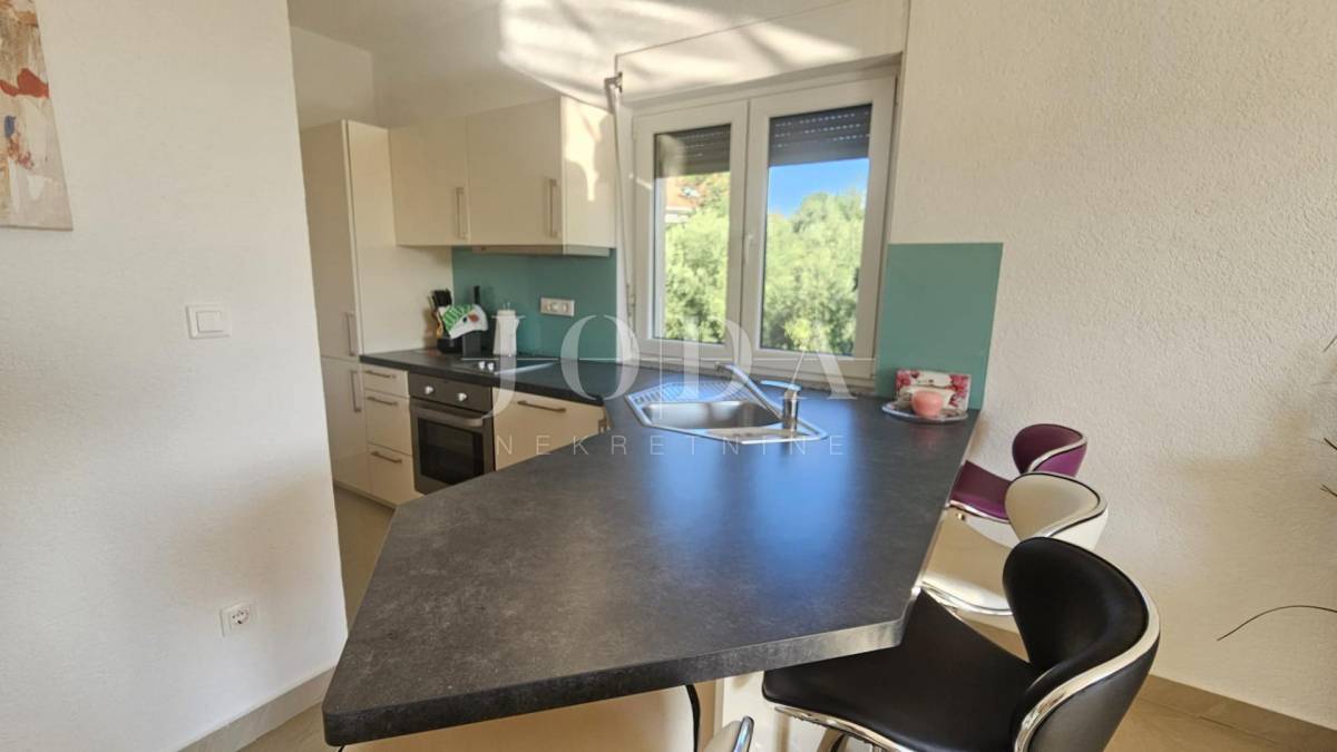 U mirnoj ulici, na svega 200 metara od mora, prodaje se moderno i ukusno namješten stan u manjoj stambenoj zgradi s ukupno 4 stana.